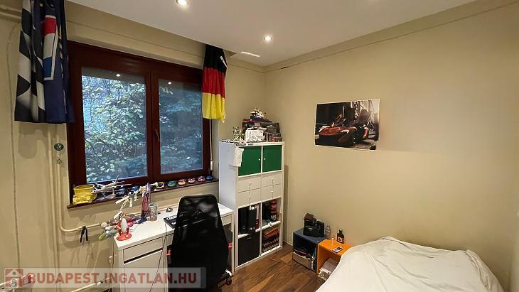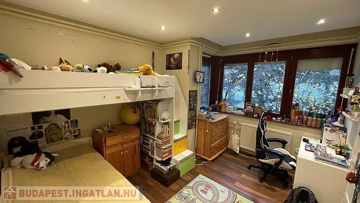 Istenhegyen, csendes mellékutcában, nagyméretű telken fekvő, kevés lakásos, jó állapotú társasházban, emeleti, napos, egyedi fűtéses, jó állapotú lakás.