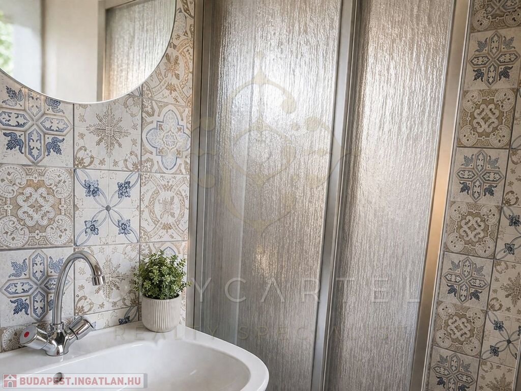 A lakás déli tájolású, 2,8 méteres belmagassággal rendelkezik, folyamatosan karbantartott és részben felújított.