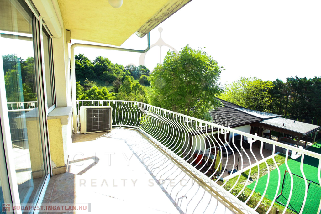 A XII. kerület egyik legzöldebb, legcsendesebb részén, Mártonhegyen eladó egy 163 nm-es, belső kétszintes, napfényes tégla lakás, amely ideális választás családoknak vagy azoknak, akik nyugalomra, térre és madárcsicsergésre vágynak, de nem mondanának le a város közelségéről sem.