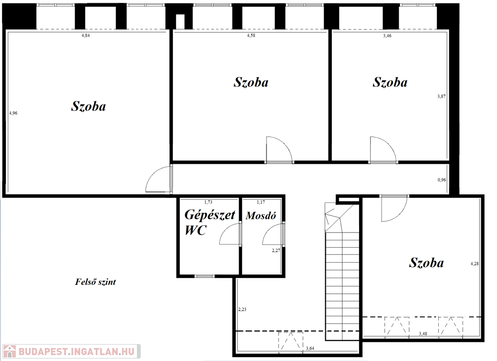 A lakás jelenleg is remek beosztású, de tovább is alakítható akár két külön lakássá is. A képek mellett megtalálható a lakás alaprajza és nemsokára átalakítási javaslatok is elérhetőek lesznek.