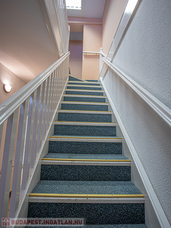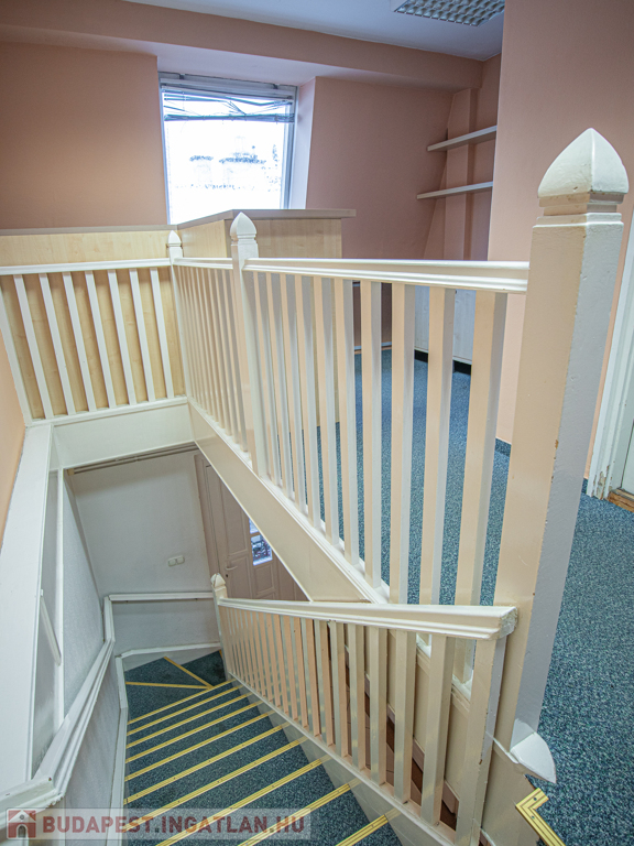A lakás kétfrontos, az ablakok a felújított Postapalota felé illetve a belső udvar felé is néznek.