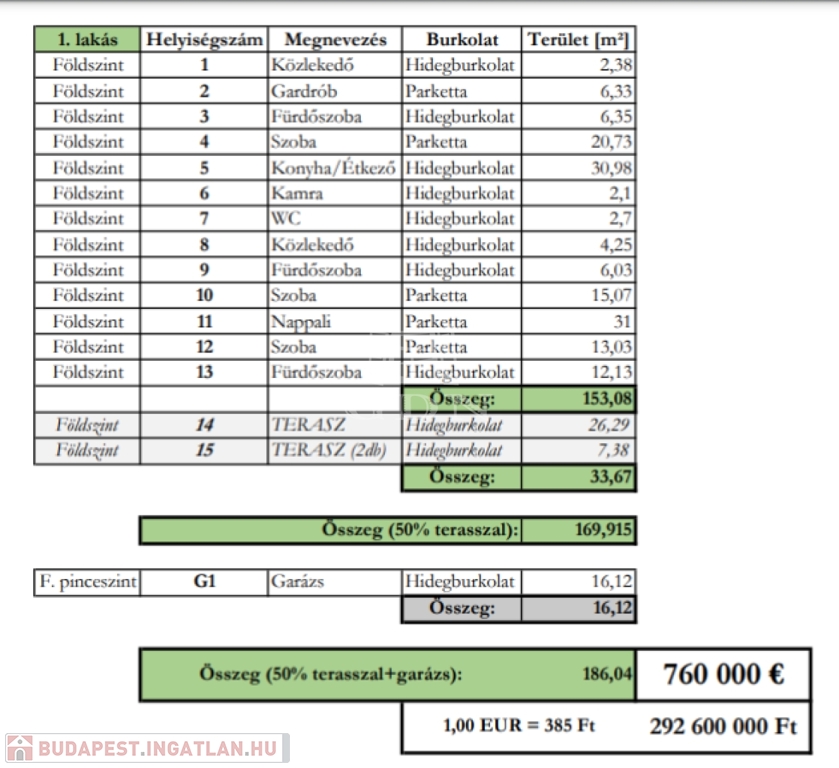 - kertkapcsolatos nagyméretű terasz: 35 m2,