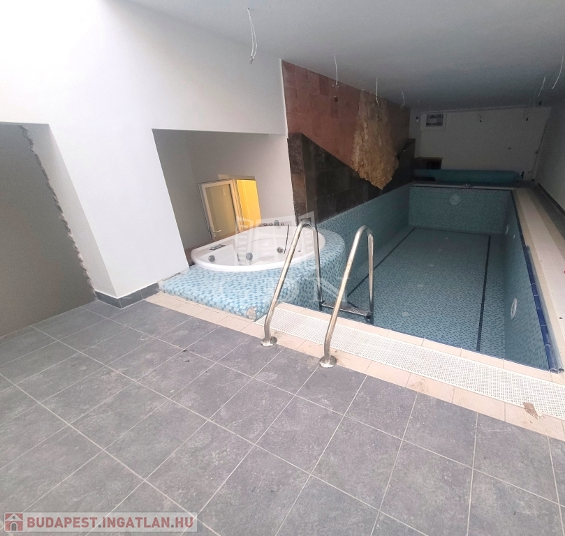 Fontos megemlíteni, hogy a kertkapcsolatos ingatlan hálószobai gardrób válaszfalának átalakításával akár közvetlen, privát kapcsolatot lehet biztosítani a wellness részhez!