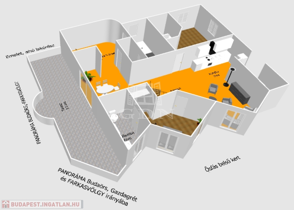 A luxus duplex (BELSŐ KÉTSZINTES + SZINTENKÉNT 1-1 TERASZ) élettér a Budai oldal kiemelt részén a Farkasvölgy-Csillebérc városrészek ölelésében a tájvédelmi terület mellett, csendes hegyvidéki környezetben helyezkedik el! A lakáshoz tartozó hatalmas méretű teraszról csodálatos panoráma nyílik a városra, valamint a Frank hegyre. A lakóhelyet körül ölelő végtelen nyugalom és csend egyedülálló élményt biztosít!