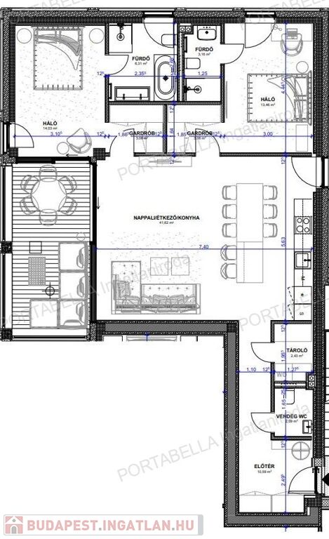 * Legújabb nemzetközi trendeknek megfelelő belsőépítészet