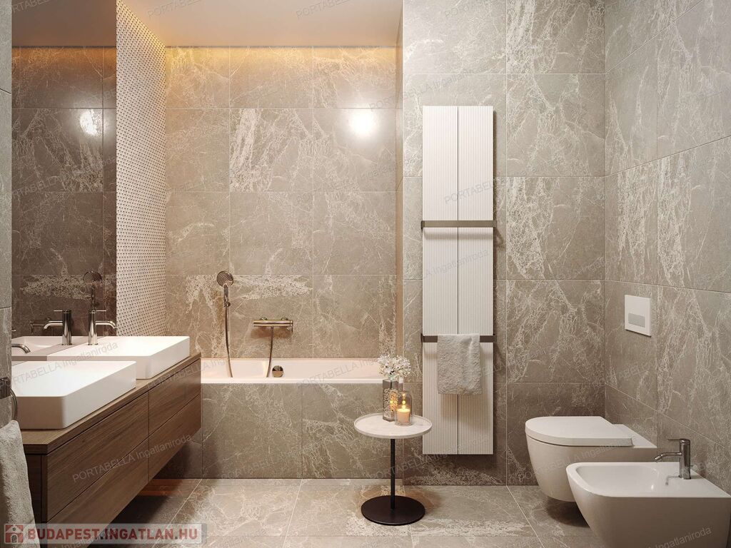 Padlófűtés biztosított a fürdőszobákban, opcionálisan további területekkel.