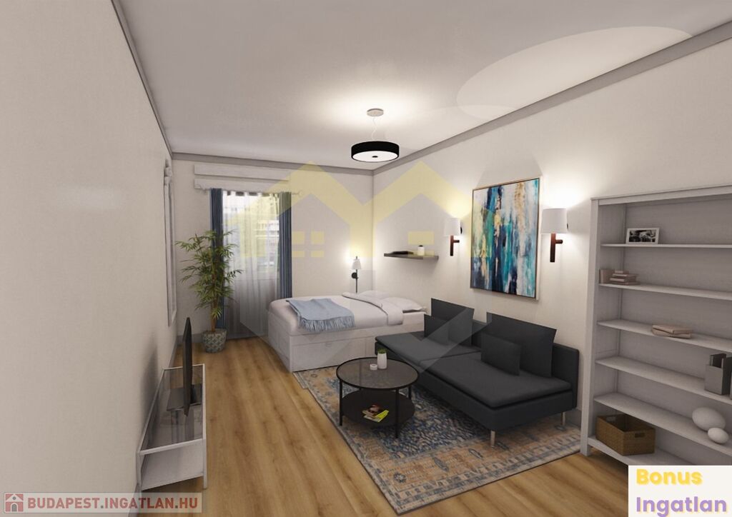 A lakás felújítást igényel. A legtöbb tulajdonos a hasonló elosztású lakást átépíti amerikai konyhás nappali (20 nm) + egy szobás ( 8 nm) otthonná. Átalakítási terv elérhető a galériában.
