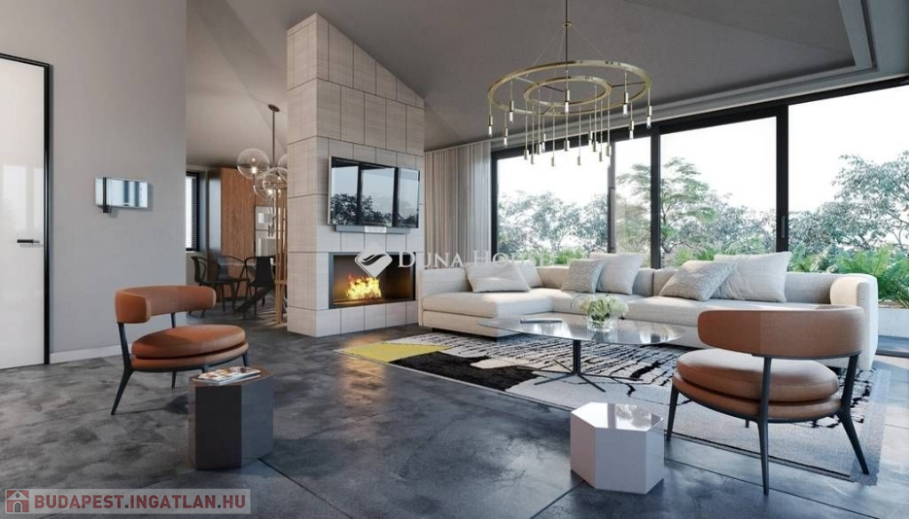 Megújuló energia, fűtő-hűtő rendszer, felső kategóriás anyaghasználat, nagy teraszok, élhető zöld terület.