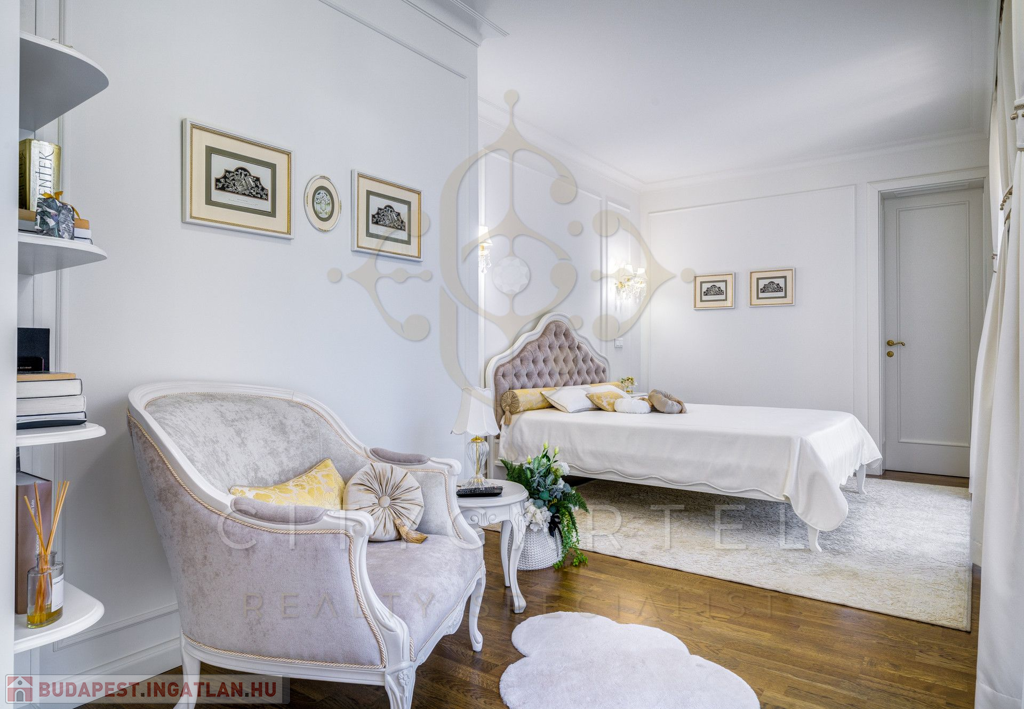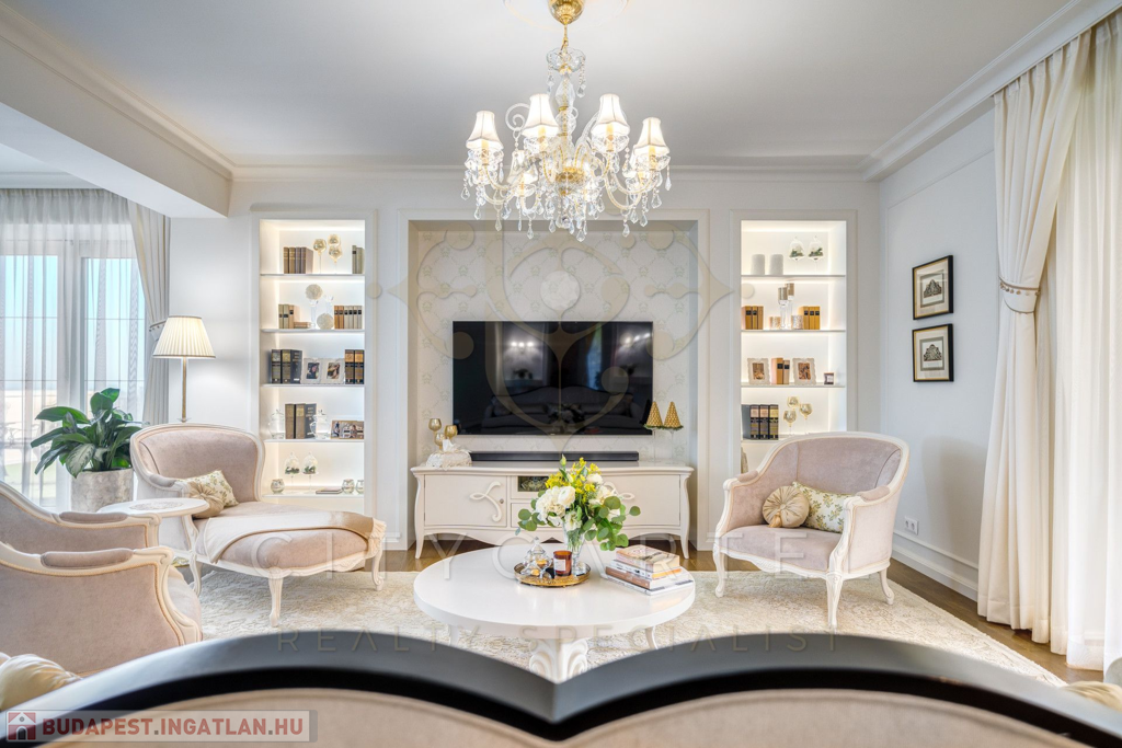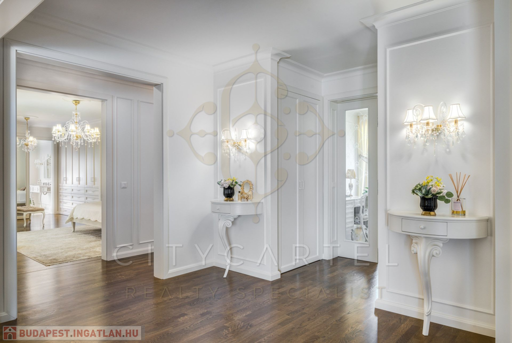 A lakás minden részletében a klasszikus francia elegancia és a modern luxus harmonikus ötvözete köszön vissza. A kifinomult belsőépítészeti tervezés a legmagasabb színvonalon valósult meg, olyan gondosan megválogatott anyagokkal és kiegészítőkkel, amelyek exkluzivitást és időtlen stílust sugároznak.