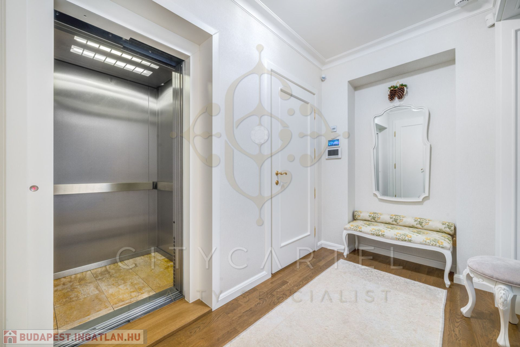Az ingatlan egy mindössze négylakásos társasház második emeletét foglalja el, amelyben a teljes privát szférát élvezheti. A garázsból közvetlenül a saját lifttel juthat a lakásába, amely egy elegáns, tágas előtérbe nyílik – a lift utolsó szakaszát kizárólag a tulajdonos használhatja, biztosítva ezzel az intimitást és a maximális kényelmet.