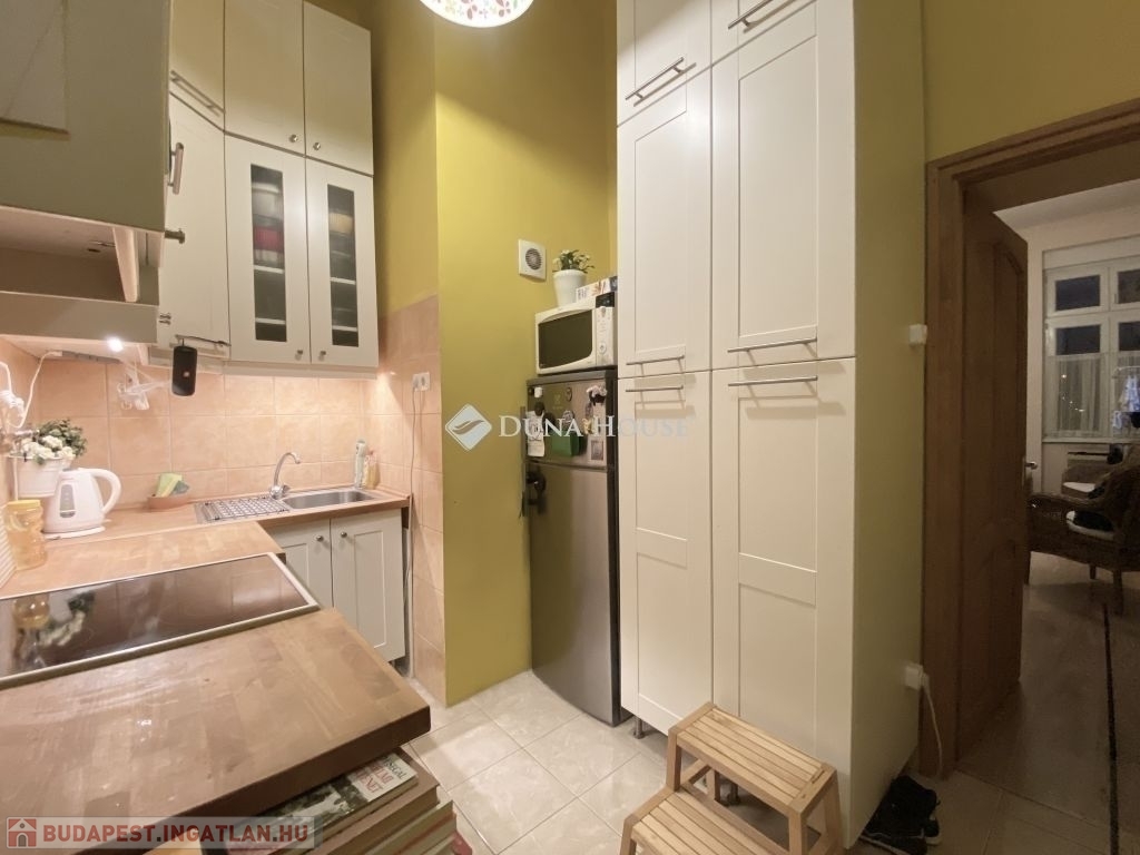 A lakás elosztása praktikus: tágas nappali, -udvari nézetű- szoba, konyha, közlekedő, valamint fürdő+WC egyben található benne.