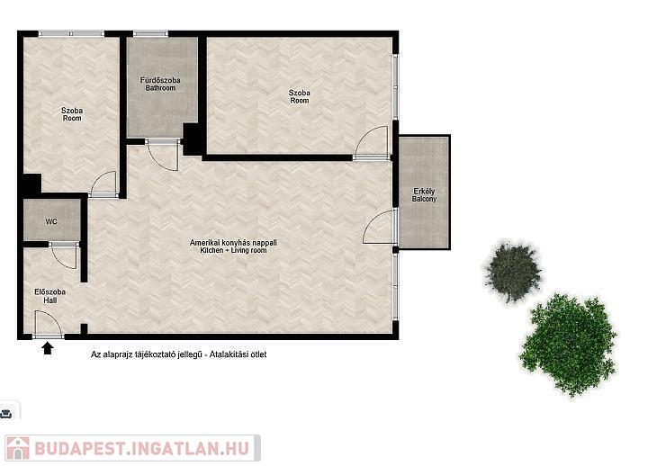 Igény szerint az ingatlan amerikai konyhás nappali + 2 hálószobássá alakítható.