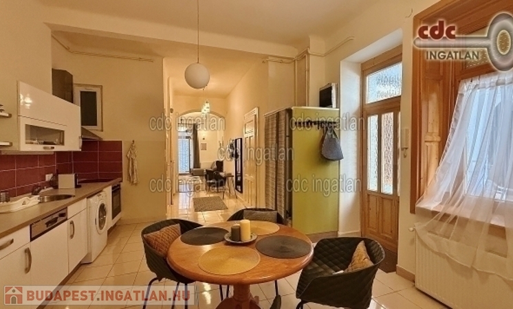 Az ingatlan nappali + 1 hálószobás, tágas terek és nagy belmagasság jellemzik. Különlegessége, a hozzátartozó 12 m²-es, kizárólagos használatú belső terasz. A lakás udvari nézetű, kifejezetten csendes és hangulatos, meghitt atmoszférát biztosít. Közös költsége 14.000 Ft, mely tartalmazza a korlátlan vízfogyasztást is.