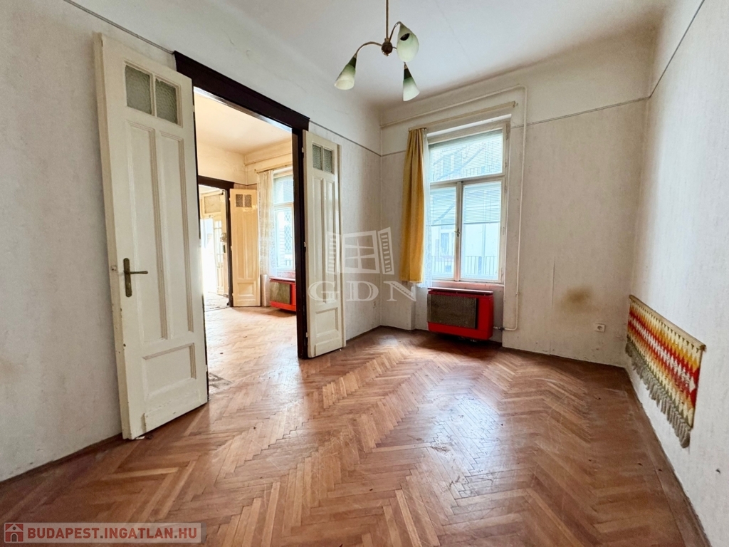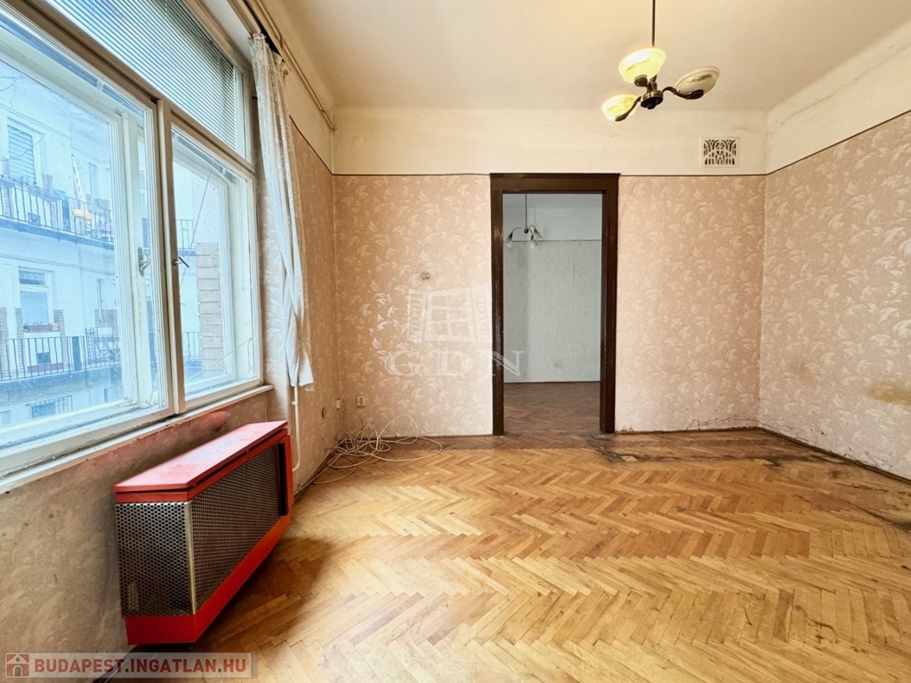 (könnyedén nappali + 2 hálószobássá alakítható), napos-világos fekvésű, alacsony fenntartású, közös költség korlátlan vízfogyasztással: 19.600 Ft, gázkonvektoros fűtésű, belső udvarra néző, felújítandó állapotú lakás, kulturált lakóközösségű házban eladó.