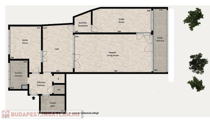 Az előszobából közelíthetjük meg az ablakos konyhát, a káddal szerelt fürdőszobát, a külön wc-t és a kamrát is Az lakás igény szerint könnyen nappali és három hálószobássá alakítható!