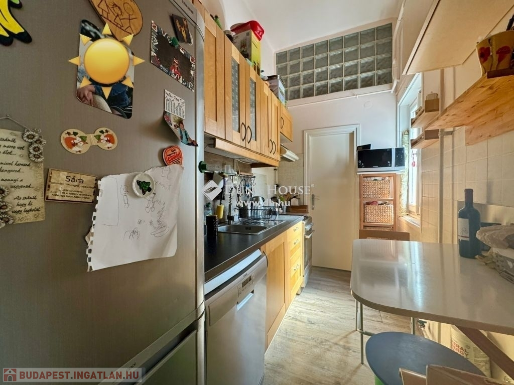 Beleszeretős otthon!Eladásra kínálok a Széchenyi-hegy kedvelt, panorámás, csendes utcájában, a Melinda úton egy 50 nm-es, 2 szobás, jó állapotú lakást.Az ingatlan egy múlt század elején épült, patinás, folyamatosan karban tartott villaépület 1. emeletén található, jól kihasznált terek, nagypolgári miliő jellemzik.Műszaki:A lakást kb. 10 éve felújították, illetve folyamatosan karban tartják, a vezetékek ki lettek cserélve, a nyílászárók jól szigetelő, 2 rétegű thermo üvegek, a szobák ablakai a villaépülethez illő, belső fa-spaletákkal rendelkeznek. További sajátossága, hogy a nappaliban található cserépkályhát megtartották, működőképes, az elektromos panel fűtés kiegészítője lehet a téli időszakban.Kert:A hatalmas, teraszos kialakítású, közös használatú kertből csodálatos budapesti panorámában gyönyörködhetünk, ahol egy kellemes kerti sütögetés a barátokkal, kis konyhakert gondozása is megoldható.Parkolás az utcán díjmentesen megoldható.Környék:A hegyvidéki környezetnek köszönhetően mindig friss a levegő, a környező utcákat körülveszi a tájvédelmi körzet, így valóban csendes, nyugodt, vadregényes helyen találhatja meg az otthonát. Mégis jó az infrastruktúrája is, hiszen néhány perces sétával elérhető bolt, orvos, gyógyszertár, posta, bölcsőde, óvoda, iskola, valamint a népszerű Szamos Szépkilátás Cukrászda és a Normafa is.Közlekedése szintén kiváló. A Széll Kálmán tér csak 15 perc busszal, itt jár a fogaskerekű is, amivel a Városmajorba juthatunk.Az ingatlan banki finanszírozással is megvásárolható, várjuk kedves ügyfeleinket ingyenes hitel tanácsadásunkra.Leginkább olyan természetkedvelő, nyugalmat keresőnek ajánlom, akinek fontos fontos az, hogy távol a város zajától, mégis könnyen megközelítve azt éljen. Akinek fontosak a tágas terek, a jól kihasználható kert, de szem előtt tartják, hogy biztonságos környéket válasszon.Könnyen fenntartható otthont kínálok, ami mindent tud, amit egy lakásnak tudnia kell.Várom hívását!