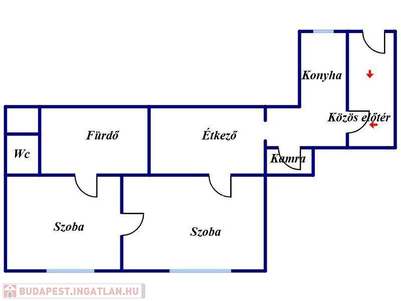 Az ingatlanban 2 szoba, étkező, külön fürdő és wc, kamra található.