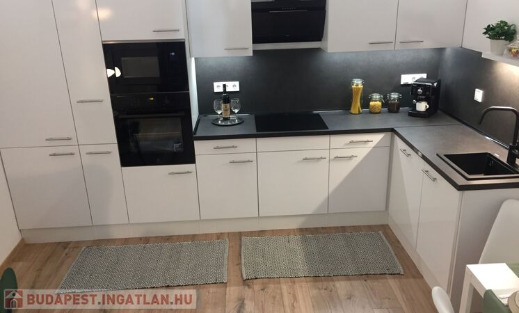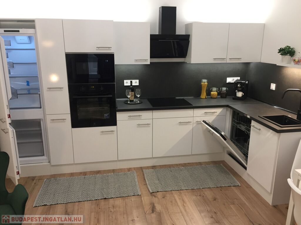 Komplett felszerelt konyha, beépített gépekkel.