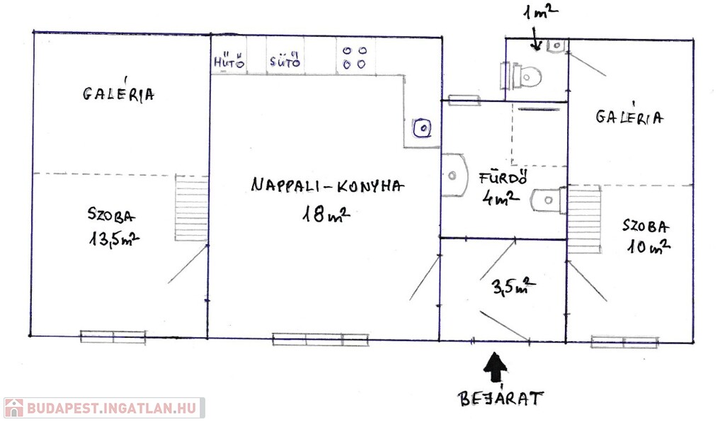 A 3,8 m -es belmagasságnak köszönhetően két galéria is kialakításra került,