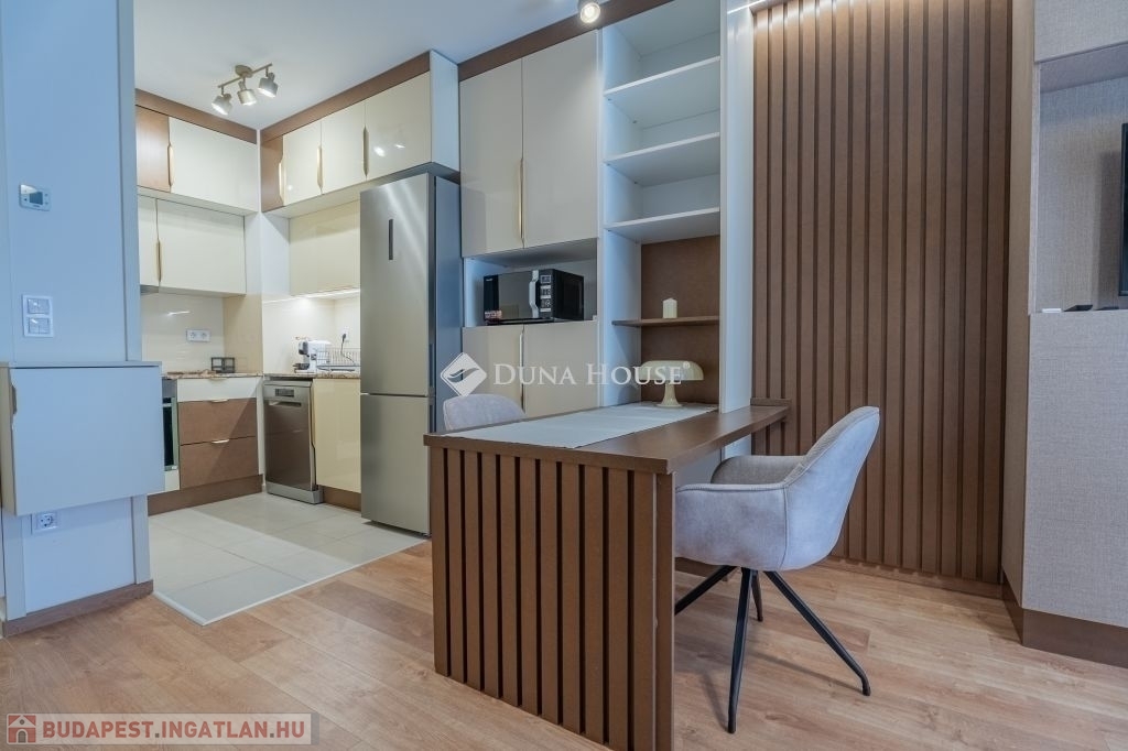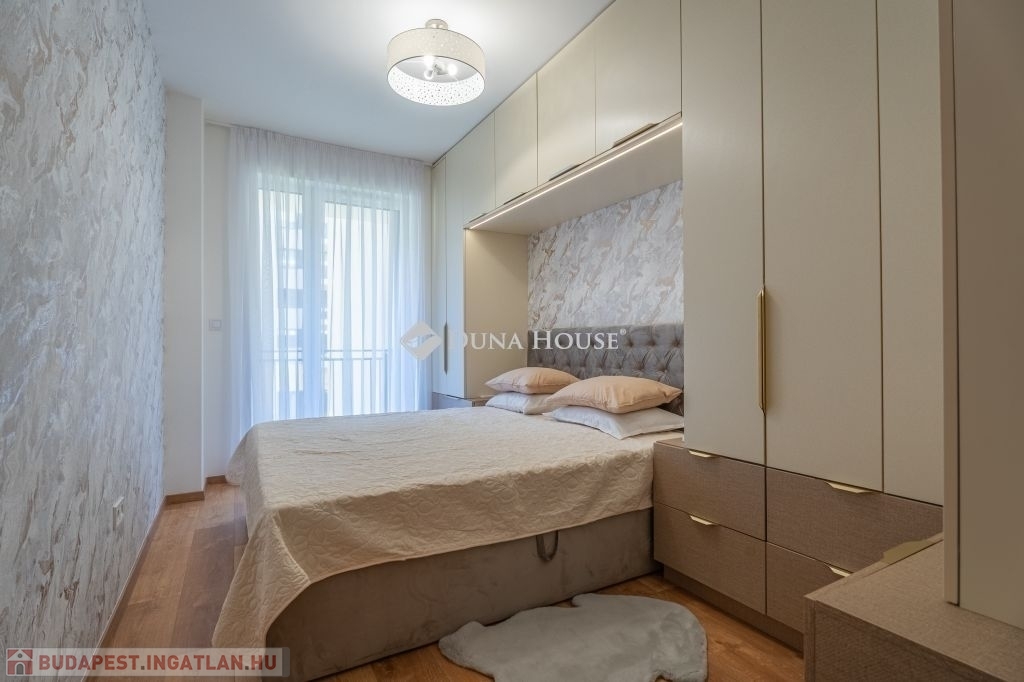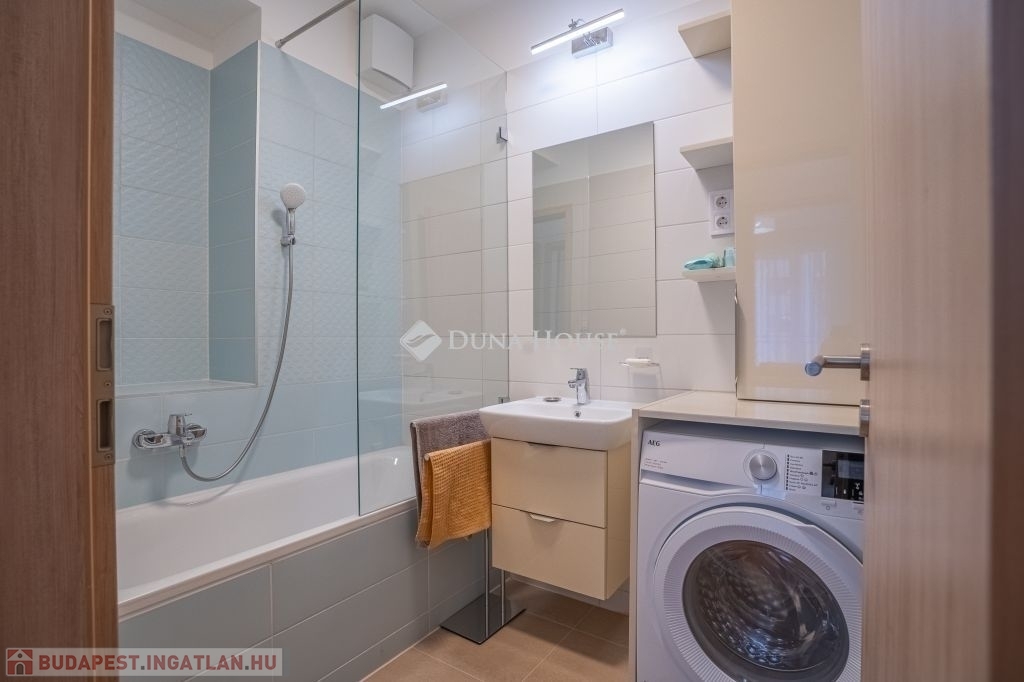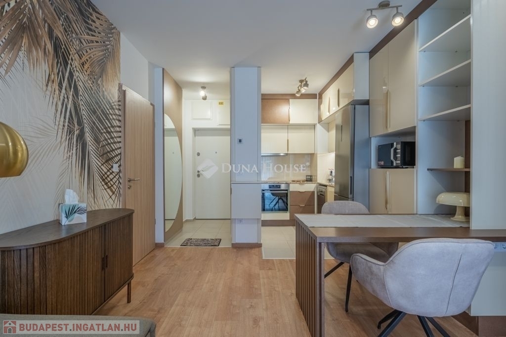 West Side Gardenben – stílusos, azonnal költözhető lakás a XIII. kerület szívében!A XIII. kerület legújabb lakóparkjában, a Big George által fejlesztett West Side Gardenben kínálok eladásra egy 1. emeleti, 45 m²-es, igényesen kialakított, ízléses otthont.A belső terek megkomponálását profi tervező végezte, ahol a meleg bézs árnyalatok, a minőségi burkolatok és a harmonikus anyaghasználat gondoskodnak az időtálló, elegáns hangulatról. Minden részlet a kényelmet és az esztétikát szolgálja.Főbb jellemzők:Világos, amerikai konyhás nappali, gépesített konyhával, gránit munkalappalÖsszehangolt belsőépítészeti koncepció, modern bútorzattalOkosotthon vezérlés, mennyezeti hűtés-fűtésHő- és hangszigetelt nyílászárók, elektromos redőnyök, szúnyoghálóTágas terasz, amely a csendes, parkosított belső kertre nézNagyobb méretű teremgarázs beálló és tároló a vételáron felül kötelezően megvásárolandó!A West Side Garden kiváló elhelyezkedéssel bír: a Váci út, Duna Pláza, metró, irodaházak és rekreációs lehetőségek egyaránt pár perces sétával elérhetők, miközben a zöld, belső udvar nyugodt életteret biztosít.Ideális választás azok számára, akik egy letisztult, modern otthonban képzelik el a mindennapjaikat – kompromisszumok nélkül.