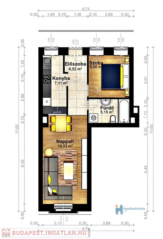 | Fűtés jellege: | Központi (egyedi mérővel) |