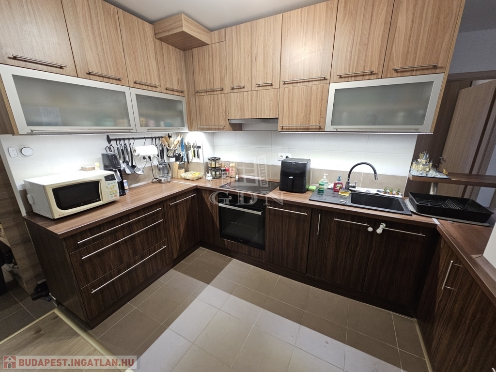 beépített, gépesített konyha (sütő, főzőlap, mosogatógép)