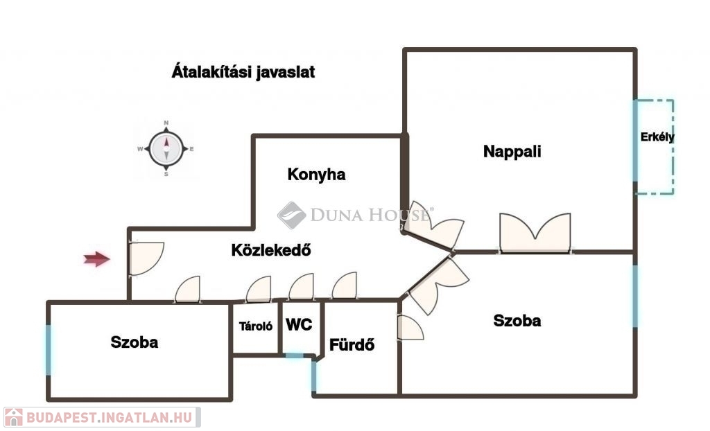 A lakás két bejárattal rendelkezik egy az előszobába, egy a konyhába , így akár rendelő, iroda vagy többfunkciós otthon kialakítására is tökéletesen alkalmas. A szobák külön és egymásból is nyílnak, a fürdőszoba két irányból megközelíthető, a WC külön helyiségben található.