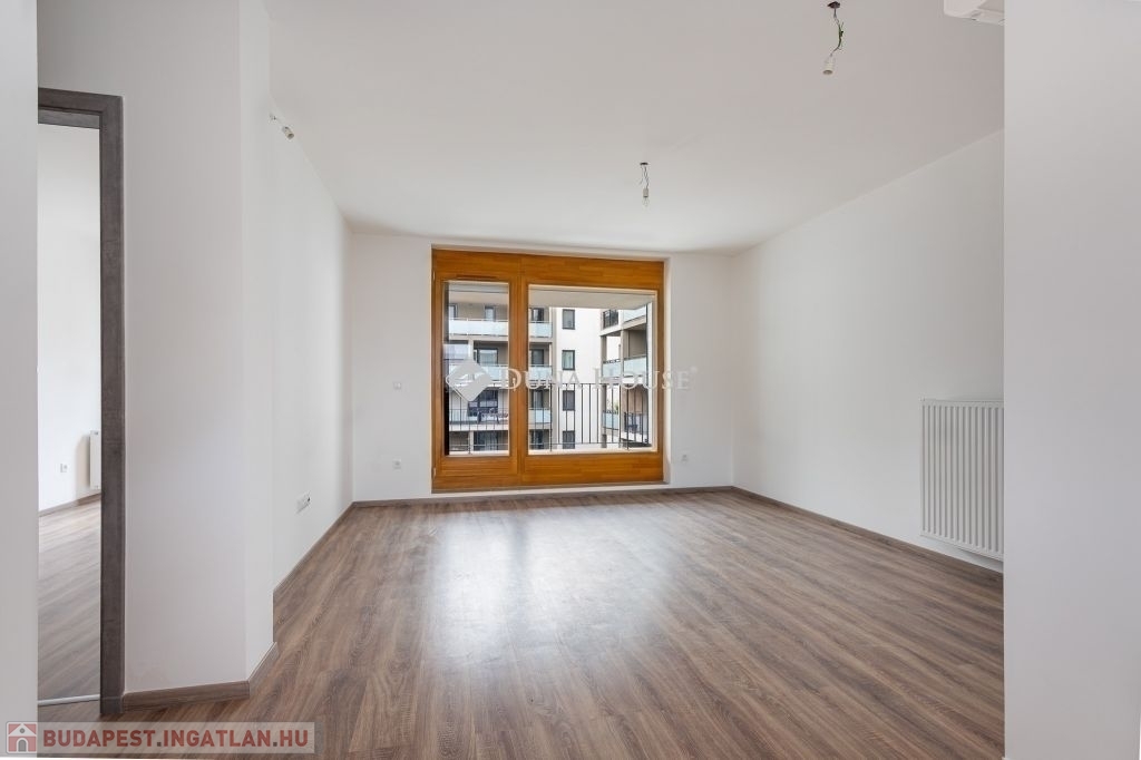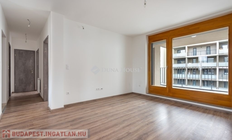 Lakás elrendezés és hangulatA lakás a XIII. kerületben, egy újépítésű lakópark hatodik emeletén található, déli tájolással, nappali + két hálós elosztással. A bejáratnál biztonsági ajtón lépsz be egy tágas előszobába, ahol kényelmesen elférnek az előszobabútorok, cipők, kabátok. Innen egy közlekedőn át jutsz a nappaliba, illetve a hálószobákhoz.A nappali nagy üvegfelülettel nyílik a terasz felé, fa nyílászárókkal, amelyek jól illenek a szürkés fa mintázatú laminált padlóhoz és a modern, sötétebb beltéri ajtókhoz. A nappalihoz ablakos amerikai konyha tartozik, így a konyha is kap természetes fényt. A konyha mellett külön háztartási helyiség/tároló kapott helyet, ahol a háztartási eszközök kulturáltan elpakolhatók.A nappaliból egy kb. 16 m²-es, részben fedett teraszra lépsz ki, amely a lakópark belső udvarára néz. A mérete alkalmas arra, hogy kinti étkezőasztalt, ülőgarnitúrát és növényeket is elhelyezz, így ténylegesen használható kültéri élettér. A hatodik emeleti magasság és az elhelyezkedés miatt a terasz intim, nincs közvetlen belátás a szomszédos lakásokból.A két hálószoba külön nyílik a közlekedőről, mindkettőben fa keretes ablakok vannak a terasz irányába, egységes, semleges padlóburkolattal. Jó arányú, jól bútorozható szobák, hálóként, gyerekszobaként vagy dolgozóként is jól használhatók.A lakás egyik erőssége a két, külön kialakított fürdőszoba, mindkettőben WC-vel. Az egyikben kád található, a másikban üvegfallal határolt zuhanykabin. A falakon modern, fehér, részben textúrált csempék vannak, nagyobb formátumú, semleges padlólapokkal. Mindkét fürdőszoba ablakos, természetes fénnyel és szellőzéssel, törölközőszárítós radiátorral.Az egész lakás színvilága visszafogott és egységes: fehér falak, fa hatású padló, szürke ajtók, fehér kerámia és króm szerelvények. Ez megkönnyíti a berendezést, szinte bármilyen stílus jól illeszthető hozzá. A lakás új állapotú, üres, azonnal költözhető.Épület és környezetA lakás modern, liftes, újépítésű lakóparkban található, szellős beépítéssel és nagy, gondozott belső kerttel. A lakóépületek a zöld udvar köré szerveződnek, a lakás ablakai és a terasz is erre a belső kertre néznek, így a mindennapi látvány inkább zöldfelület, mint forgalmas utca. A belső udvar rendezett, kialakított növényzettel, gyepfelületekkel, a ház egésze rendezett, egységes, mai megjelenésű.A lépcsőházak és közös terek tiszták, átgondoltan szervezettek, a lift a garázsszinttől a felső szintekig közlekedik. A környék városi életmódra alkalmas: bevásárlás, szolgáltatások, éttermek, a belváros és a nagyobb közlekedési csomópontok rövid sétával vagy néhány megállóval elérhetők. Aki nem akar minden nap autóba ülni, annak ez jól tervezhető lokáció.Kinek ajánlott és miért érdemes megnézniAz elrendezés, a két fürdőszoba és a nagy terasz miatt a lakás jó választás lehet fiatal párnak, akik külön hálót, nappalit és egy plusz szobát keresnek dolgozónak vagy gyerekszobának, illetve kisgyermekes családnak, akiknek fontos a zárt, zöld belső udvar és a praktikus, jól pakolható terek. Azoknak is jó megoldás, akik részben vagy teljesen otthonról dolgoznak, és szükségük van egy csendes, elkülöníthető szobára.Ha olyan új építésű, háromszobás lakást keresel, amelyben nagy terasz, két ablakos fürdőszoba, rendezett belső kertre néző kilátás és semleges, könnyen berendezhető belső terek vannak, ezt az otthont érdemes személyesen is megnézni. Időpontegyeztetésért keress bizalommal.