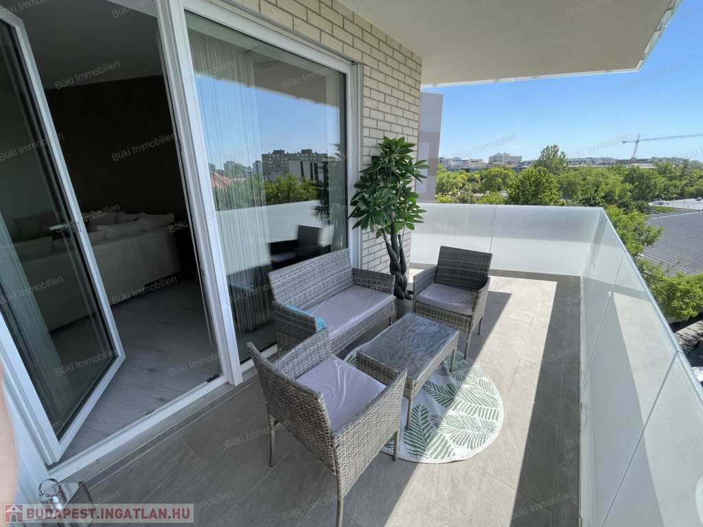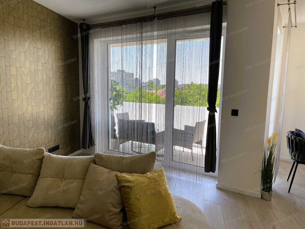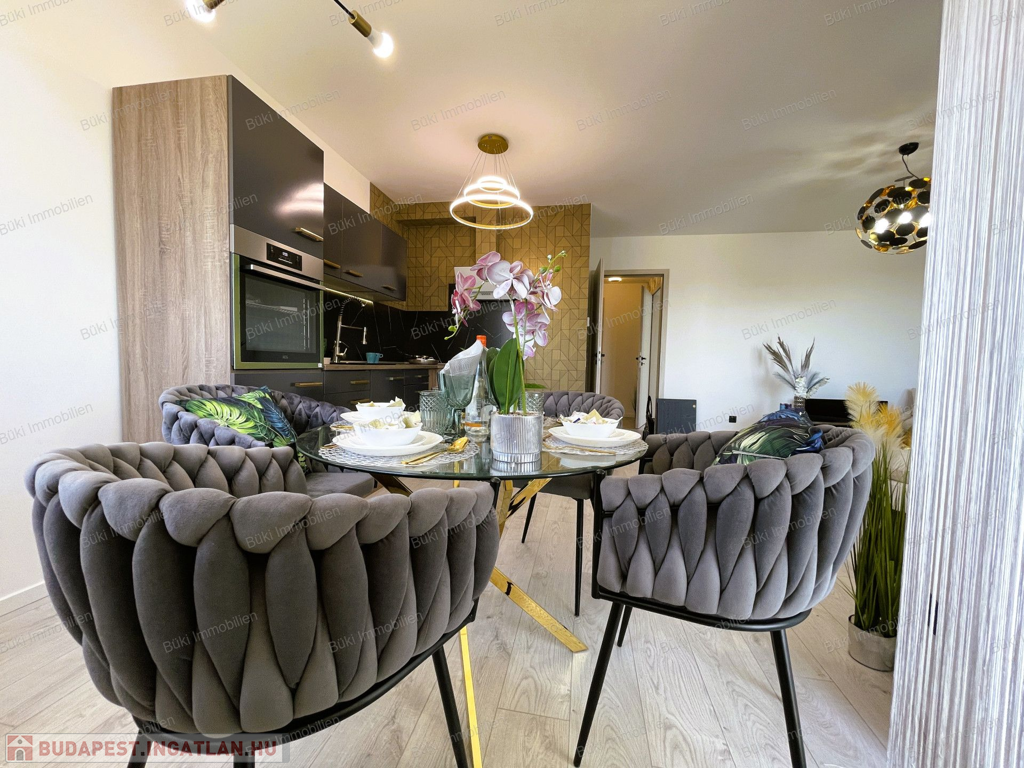 Itt van minden, ami csak egy igényes embernek kellhet a mindennapokhoz. Belsőépítész által tervezve, megalkotva, a legapróbb részletekre is ügyelve. Színvilágával elkápráztat, miközben az erkélyől a várost lehet csodálni, több szögből is. A bútorok egyedien lettek összeválogatva, a hideg és meleg színárnyalatokkal játszva, egy valódi alkotás. Ide már csak egy kulcsot, kistáskát kell hozni, és kezdőthet is egy új életszínvonal. Bárki, akit ide áthív az ember kávézni, borkóstolóra, vagy Netflixezni, biztosan elismerőleg fog szólni. A hatalmas erkélyen tavasztól mehet a teázás croissanttal, kis narancsdzsemmel és egy kis friss grapefruittal. Az erkély sarkon van, így a szívonalas zavartalan esti elmélkedés, esetleg a következő Nobel-díjas találmány megalkotása teljesen lehetséges, csak is a madarak lesznek jelen, mint hangulatfokozó természetes nyugatók. Wc és fürdő külön, így ha nagyobb társaság jönne össze, a házigazda zavartalanul mosakodhat, ha esetlegesen foglalt a wc.