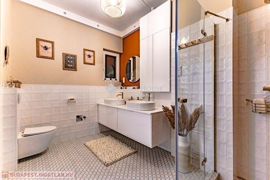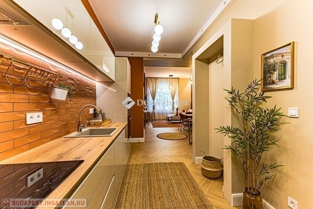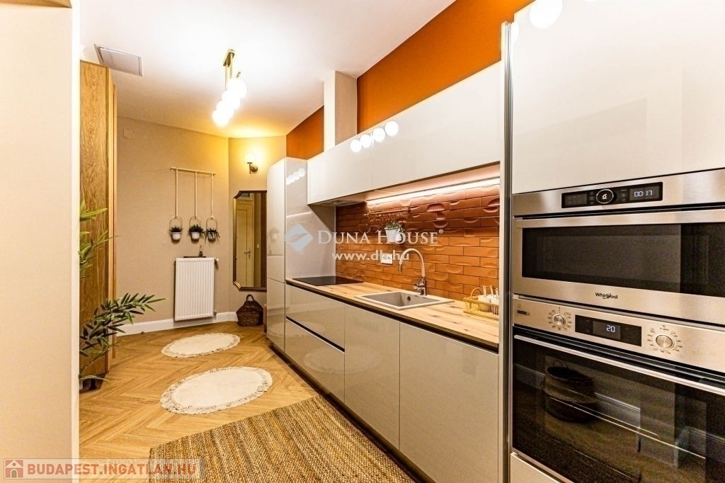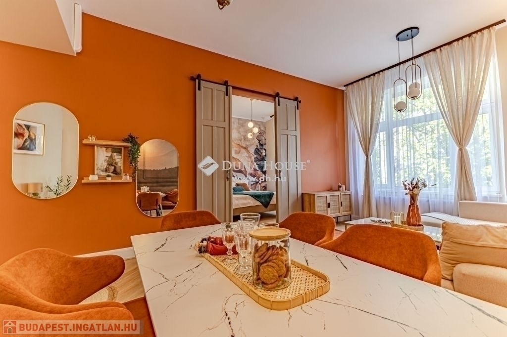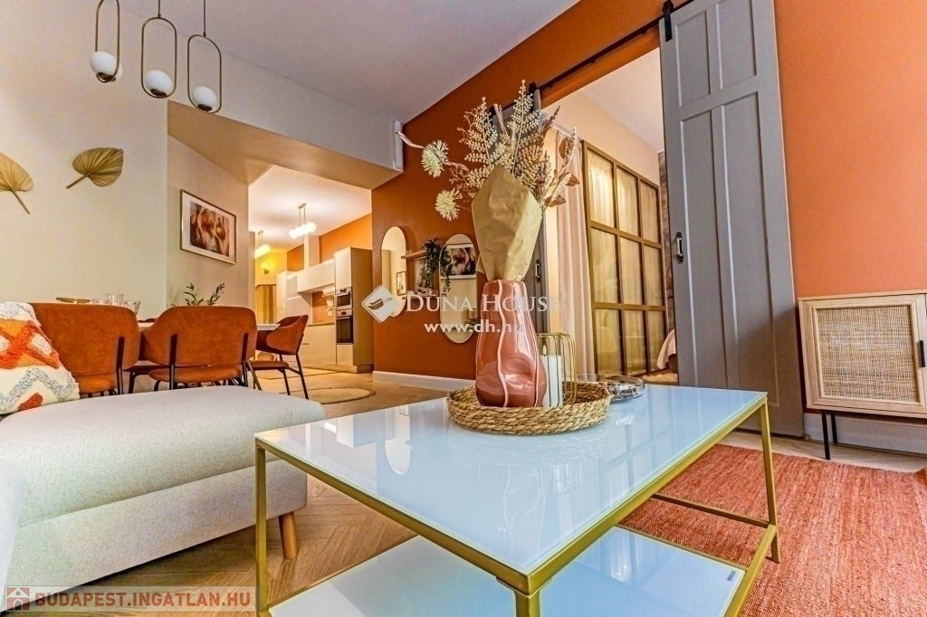 . A lakás tulajdoni lap szerint 92 nm melyet két lakássá bontottak, ennek eredménye, egy közel 75 nm, és egy 18 nm alapterületű lakás került kialakításra. Jelen hirdetésben szereplő 75 nm lakrészt kínáljuk eladásra.A lakást, a mostani tulajdonos az alapokig visszabontotta, és minden elemében megújította. Ennek köszönhetően, két hálószoba és tágas nappali került kialakításra.A terekre jellemző, hogy a mind a fő mind a második hálószoba is közel 15 nm; a fő hálószobából leválasztottak egy Gardrobe helyiséget. A nappali tágas világos, magában foglalja az étkezőt is, a konyha a tágas közlekedő részen kapott helyet, ahonnan a Fürdő és az udvari tájolású hálószoba is megközelíthető.A felújítás során magas minőségű anyagok kerültek beépítésre, mind a szaniterek, mind a nyílászárók tükrözik azt az igényességet, amelyet a Home Staging során kiválasztott bútorok és berendezési tárgyak egészítenek ki és teszik harmonikus otthonná. A lakás teljes bútorzattal, és berendezési tárgyakkal együtt megvásárolható.A házban a rövidtávú kiadást mostani tudásunk szerint a ház nem engedélyezi, a kisebbik lakrész jelen pillanatban is ki van adva hosszú távra. Igény esetén az is megvásárolható, külön megállapodás alapján.Jöjjön el nézze meg.