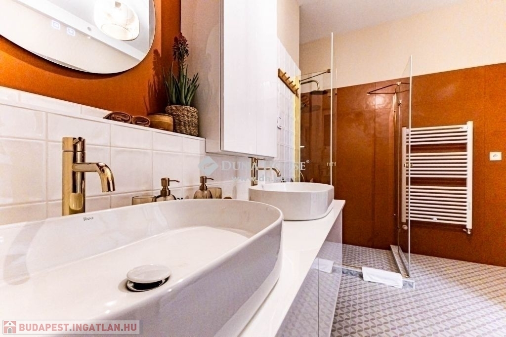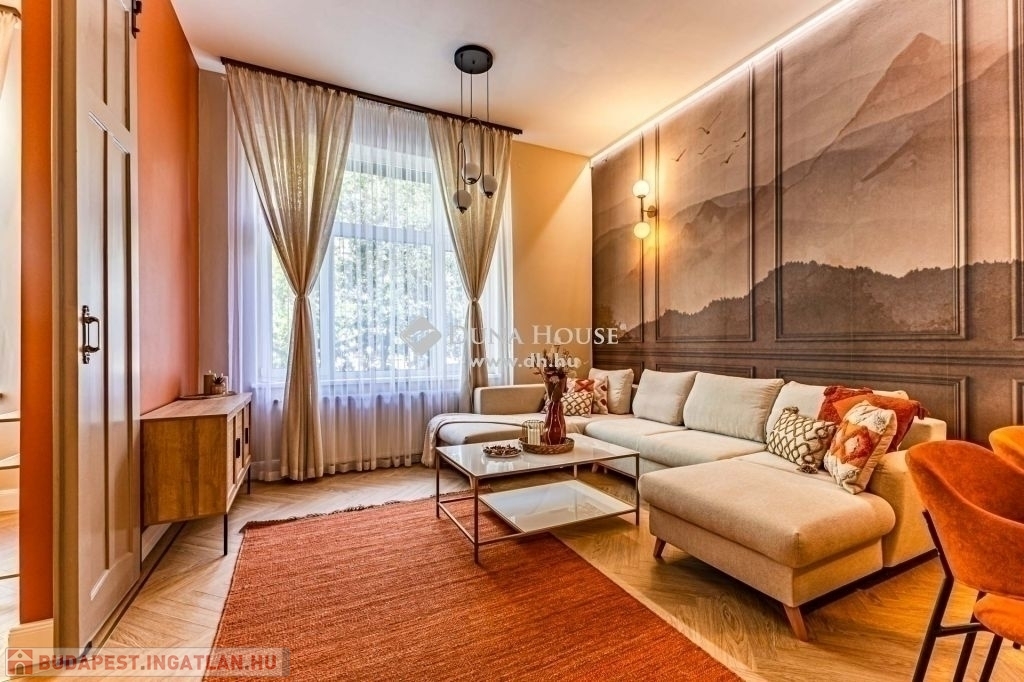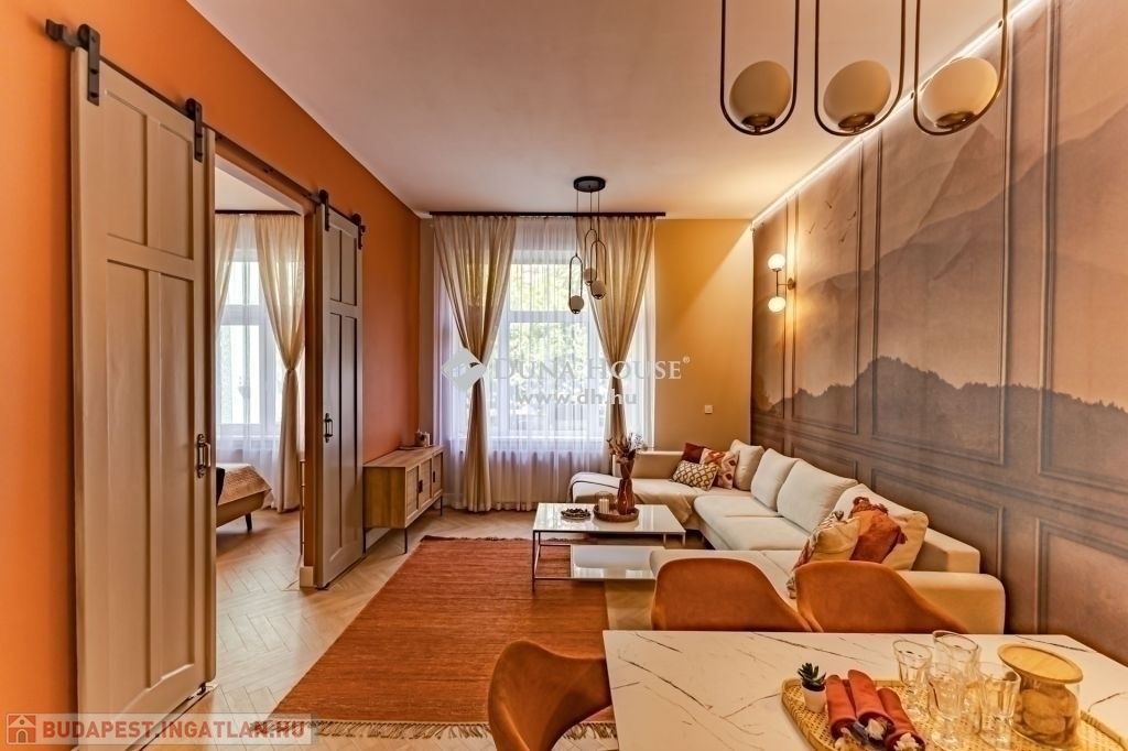 XIII. kerület Újlipótvárosi részén, a pezsgő Belváros szomszédságában pár perc sétára Westendtől, eladó egy nagypolgári lakás. A lakás tulajdoni lap szerint 92 nm melyet két lakássá bontottak, ennek eredmény keppen, egy közel 75 nm, és egy 18 nm alapterületű lakás került kialakításra. Jelen hirdetésben szereplő 75 nm lakrészt kínáljuk eladásra.A lakást, a mostani tulajdonos az alapokig visszabontotta, és minden elemében megújította. Ennek köszönhetően, két hálószoba és tágas nappali került kialakításra.A terekre jellemző, hogy a mind a fő mind a második hálószoba is közel 15 nm; a fő hálószobából leválasztottak egy Gardrobe helyiséget. A nappali tágas világos, magában foglalja az étkezőt is, a konyha a tágas közlekedő részen kapott helyet, ahonnan a Fürdő és az udvari tájolású hálószoba is megközelíthető.A felújítás során magas minőségű anyagok kerültek beépítésre, mind a szaniterek, mind a nyílászárók tükrözik azt az igényességet, amelyet a Home Staging során kiválasztott bútorok és berendezési tárgyak egészítenek ki és teszik harmonikus otthonná. A lakás teljes bútorzattal, és berendezési tárgyakkal együtt megvásárolható.A házban a rövidtávú kiadást mostani tudásunk szerint a ház nem engedélyezi, a kisebbik lakrész jelen pillanatban is ki van adva hosszú távra. Igény esetén az is megvásárolható, külön megállapodás alapján.Jöjjön el nézze meg.