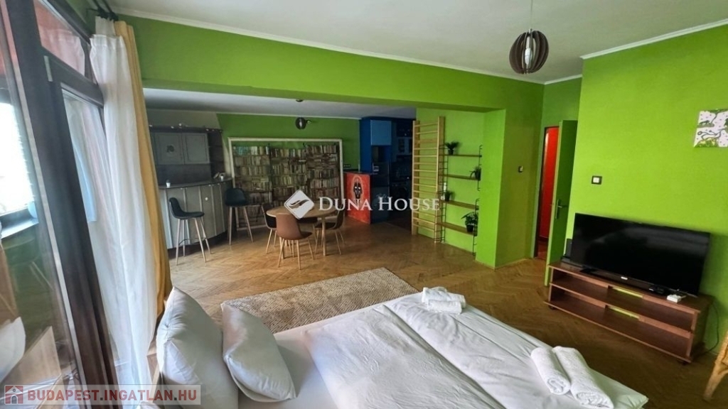 XIII. ker. Újlipótváros kedvelt részén, a Kresz Géza utcában eladó egy 63m2-es, déli fekvésű, nagyrészt csendes közre néző, napfényben úszó, tágas terekkel rendelkező, 1. emeleti lakás. Jelenlegi beosztását tekintve, egy nagy nappalival és egy hálóval rendelkezik, de könnyedén kialakítható még egy háló, igény esetén, de akár rendelőnek vagy irodának is kifejezetten alkalmas. Infrastruktúra kiváló.