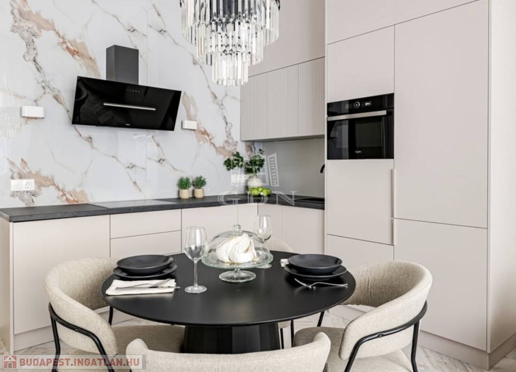 A tágas nappali, az elegáns hálószoba, a külön walk-in gardrób, valamint a modern, prémium anyagokkal kialakított konyha és fürdőszoba együtt teremtik meg a letisztult luxus atmoszféráját.