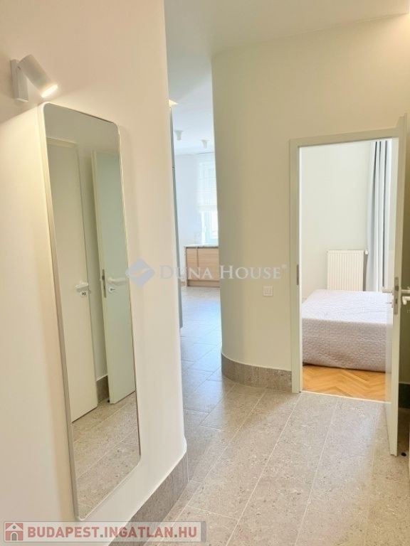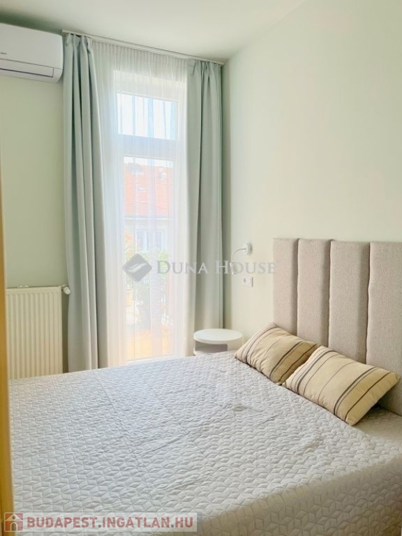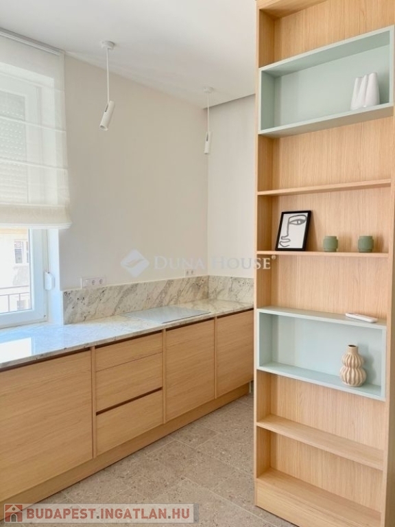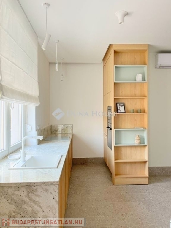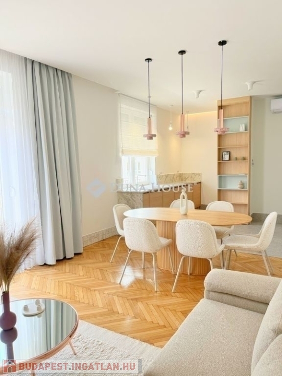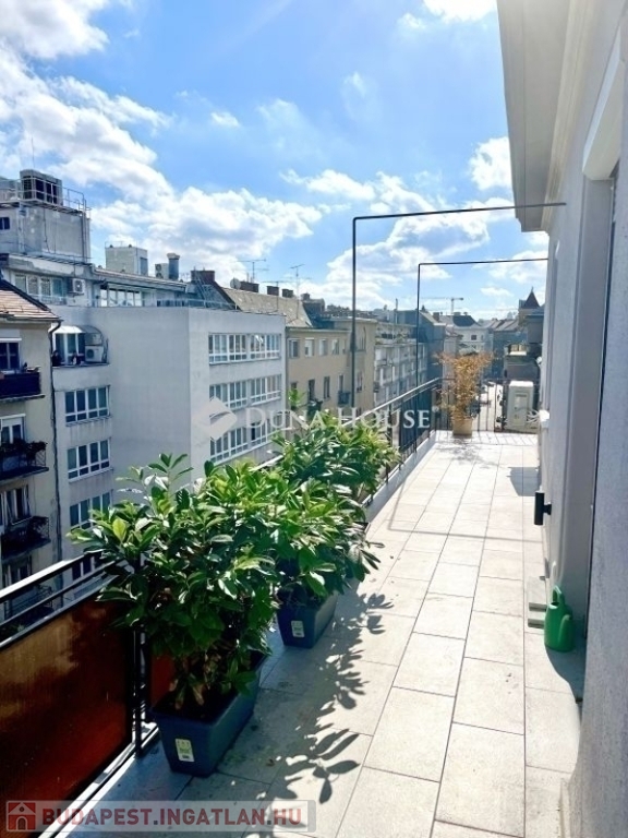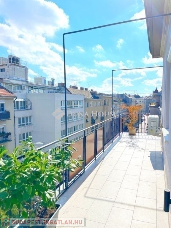 Újlipótvárosban, a Raoul Wallenberg utcában eladó egy 2024-ben teljeskörűen felújított, hatodik emeleti, 67 m²-es lakás 24 m²-es tetőterasszal a Phönix-házban.A lakás belsőépítész tervei alapján került felújításra és átalakításra. A nappali és a konyha-étkező egy tágas légtérben található, dupla erkélyajtóval a teraszra. A hálószobából szintén van kijárat a teraszra. Külön vendég WC helyiség került kialakításra.Az ingatlan főbb jellemzői: 24 m²-es, dél-keleti fekvésű tetőterasz panorámával; légkondicionálás a nappaliban és a hálószobában; egyedi beépített bútorok; BOSCH konyhai gépek (sütő, főzőlap, beépített mikró, mosogatógép, hűtő fagyasztóval); eredeti fa parketta; magas minőségű burkolatok; felújított és szigetelt tetőterasz; redőnyök; biztonsági bejárati ajtó; padlófűtés a hidegburkolatos helyiségekben.A társasház jó anyagi körülmények között van, jelenleg is folyamatban van a teljes elektromos hálózat felújítása. A lépcsőház és a lift korábban felújításra került.Az ár a teljes berendezést, bútorzatot és a gépeket tartalmazza.