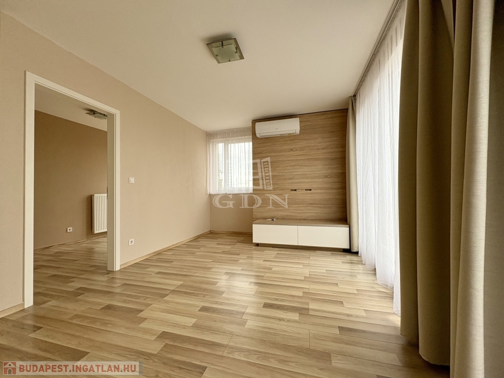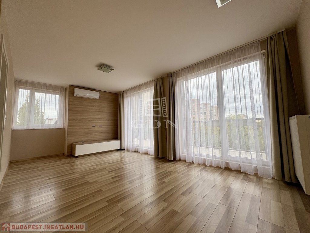 A jól átgondolt alaprajznak köszönhetően az amerikai konyhás nappali mellett három külön nyíló szoba, két fürdőszoba és praktikus tárolóterek szolgálják a kényelmet. A lakás előtt nincs magas beépítés, így a kilátás egy zöld, fás parkra nyílik, a helyiségek pedig egész nap napfényesek és csendesek.