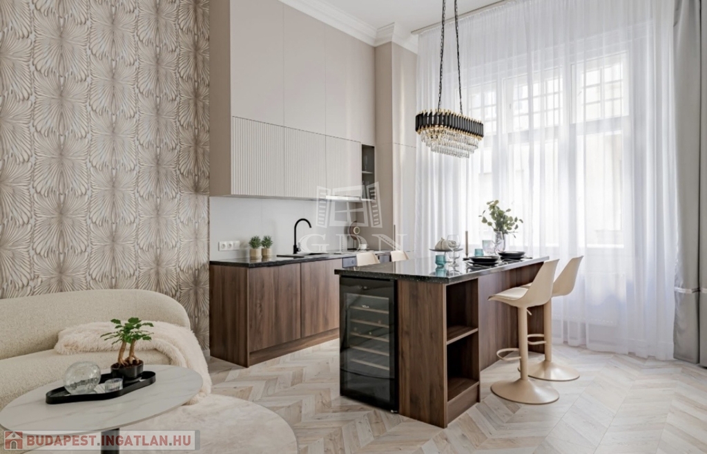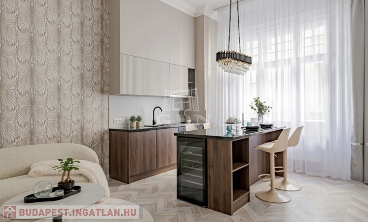Az ingatlan teljes körű felújításon esett át, ahol minden részletet a minőség, a kifinomult ízlés és a kényelem határoz meg. A tágas nappali, az elegáns hálószoba gardróbszobával, valamint a modern, prémium anyagokból kialakított konyha, fürdőszoba és külön WC harmonikus, letisztult luxusérzetet teremtenek.