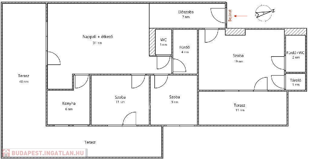 - 91 nm lakótér + 51 nm terasz (egy 40 nm-es és egy 11 nm-es terasz)