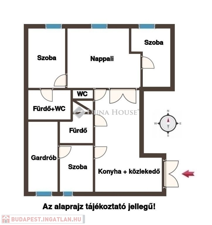 A lakás elosztása kiváló - a tágas, világos szobák és a praktikus fél szoba ideális választás nagyobb családoknak vagy akár irodai, rendelői hasznosításra is.