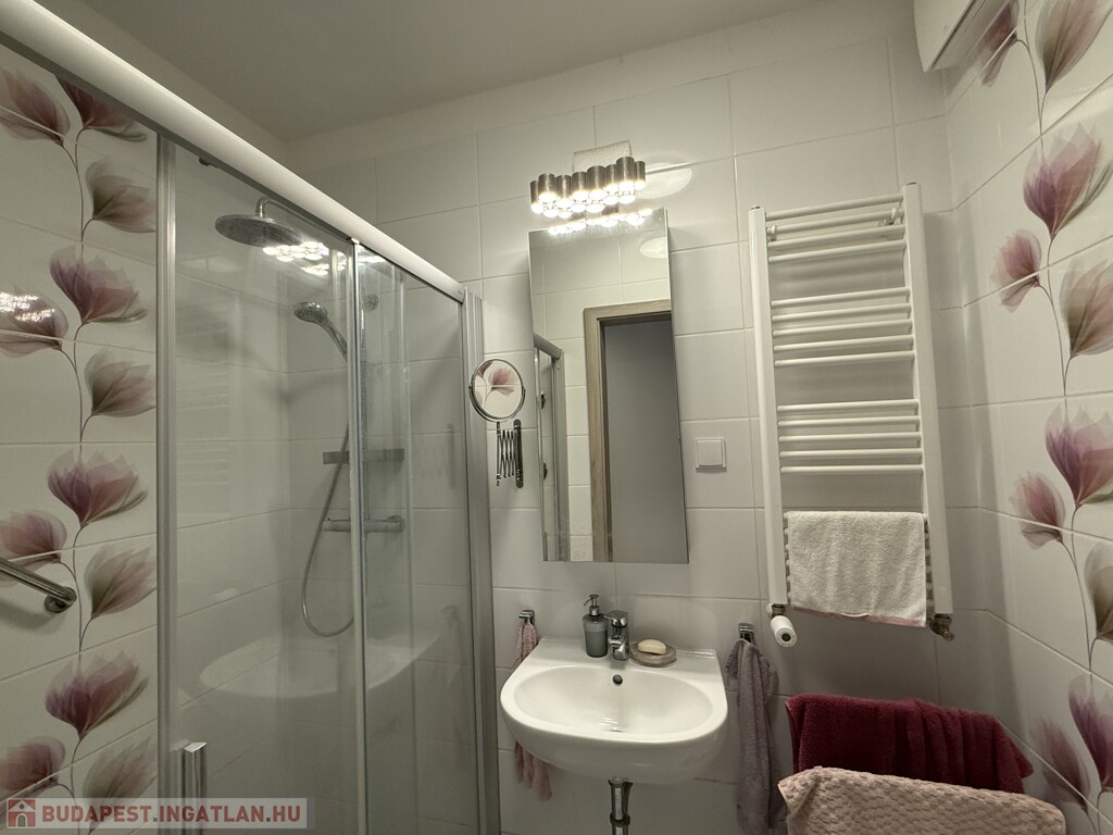 a lakás DUPLAKOMFORTOS 2-fürdőszobás, házközponti fűtéses, klímás, belső kertre és utcára néző,