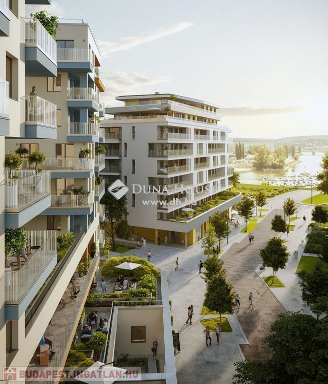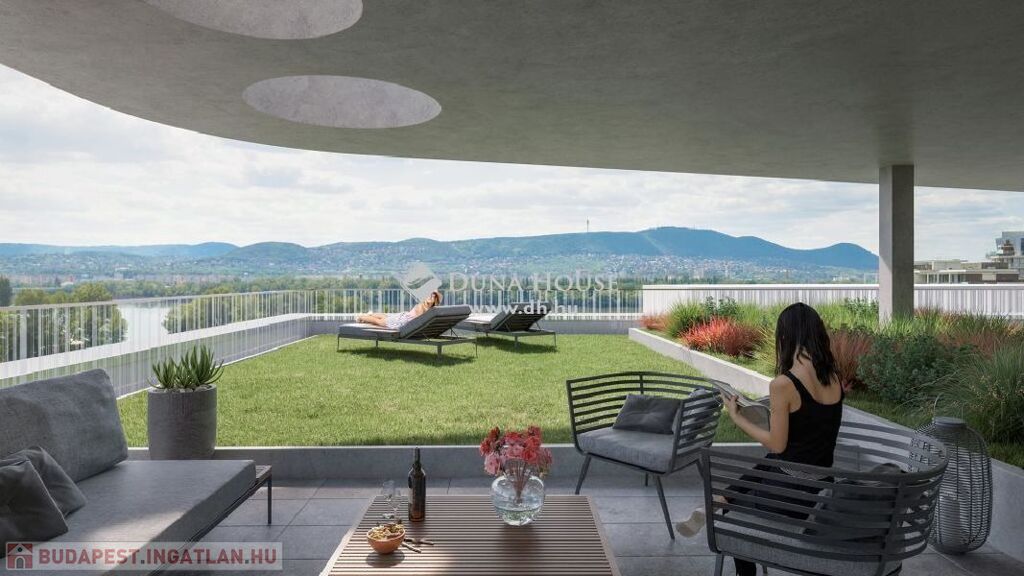 Eladó a 13. kerületben a Marina Parton, a most épülő Duna Terasz Grande-ban egy 87m2+ 113m2-es, 3. emeleti, 4 szobás, NY-i tájolású lakás. Az ingatlan Dunai Panorámás, illetve rendelkezik egy hatalmas terasszal és saját kertel.Okos-otthon megoldások, és mennyezet hűtés-fűtés gondoskodik a gazdaságos üzemeltetésről.A társasházban: Recepció szintű portaszolgálat, és csomagpont található.A közösségi életről pedig a közösségi tetőteraszok (jóga + napozó és grillterasz) a játszóterek és a lakók számára használható sporteszközök gondoskodnak.A környék:A Duna Terasz Grande olyan lenyűgöző adottságokkal rendelkező helyszínre épül, amelyből városszerte kevés létezik. A XIII. kerületi Vizafogó városrész állandóan fejlődő, megújuló, új-építésű házakkal övezett lakóövezete egyedi életmódot biztosít a lakóinak.Képzeld el, hogy a nap végén a lenyűgöző Duna-parton ülve nézed naplementét! A helyszín garantálja, hogy mindennapjaid része lesz a folyó, a sétány és a kikötő.Pár lépésre a Duna part, de számtalan szórakozási és sportolási lehetőséget talál ebben az exkluzív környezetben: Marina sétányon játszóterek, kültéri edzőterem, teniszpálya igényes éttermek, kávézók, élelmiszerbolt, jacht kikötők, kondi termek, medencék, futó pálya.Frekventáltságát tekintve 5 percre a 3-as metró, buszok, kerékpárút szinte a ház előtt, a kikötő kb. 100 méter, így akár autóval, biciklivel, metróval vagy akár hajóval is elérheti a belvárost.Befektetés:A Duna-parti lakások igen kedveltek a befektetők körében, nem ok nélkül. A korlátozottan rendelkezésre álló, Duna menti telkeken épült ingatlanok azon felül, hogy értékállóak minden évben jelentősen növekszik az értékük, illetve gyorsan és egyszerűen bérbe lehet adni, így akár kiemelkedő hozamot biztosítanak tulajdonosaiknak.Ha Ön családjával egy nyugodt, biztonságos, tiszta levegőjű, kényelmes otthont keres, vagy akár egy jó befektetést .