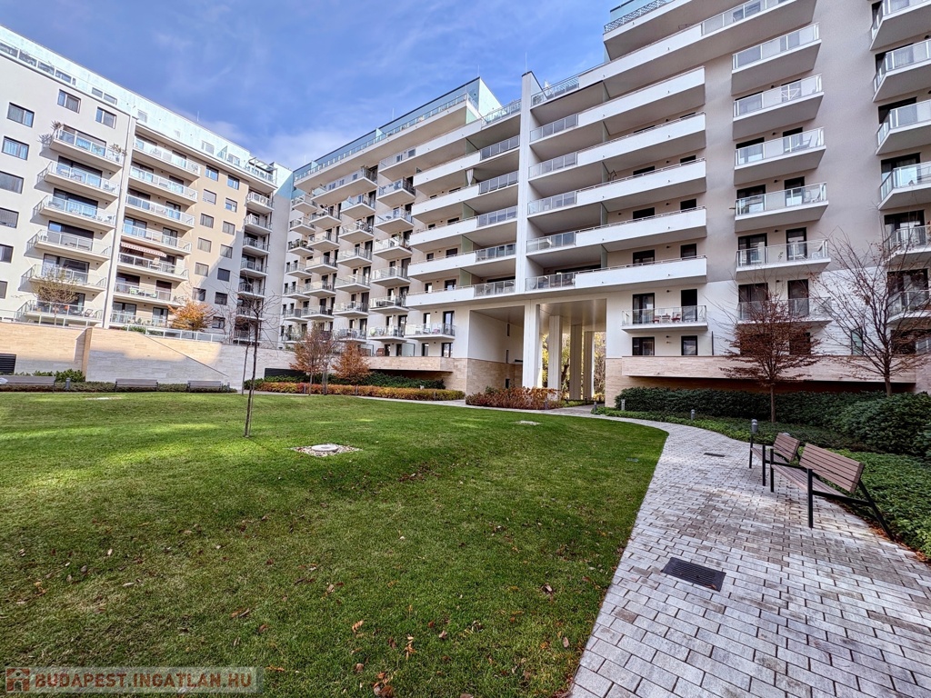 Az elegáns, két lifttel is rendelkező társasházhoz egy belső, gyönyörűen parkosított, több pihenőrésszel kialakított, beállt növényzettel rendelkező kert is tartozik.