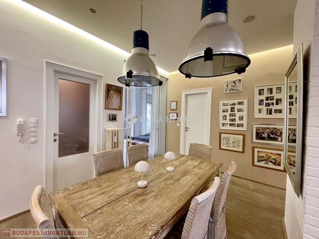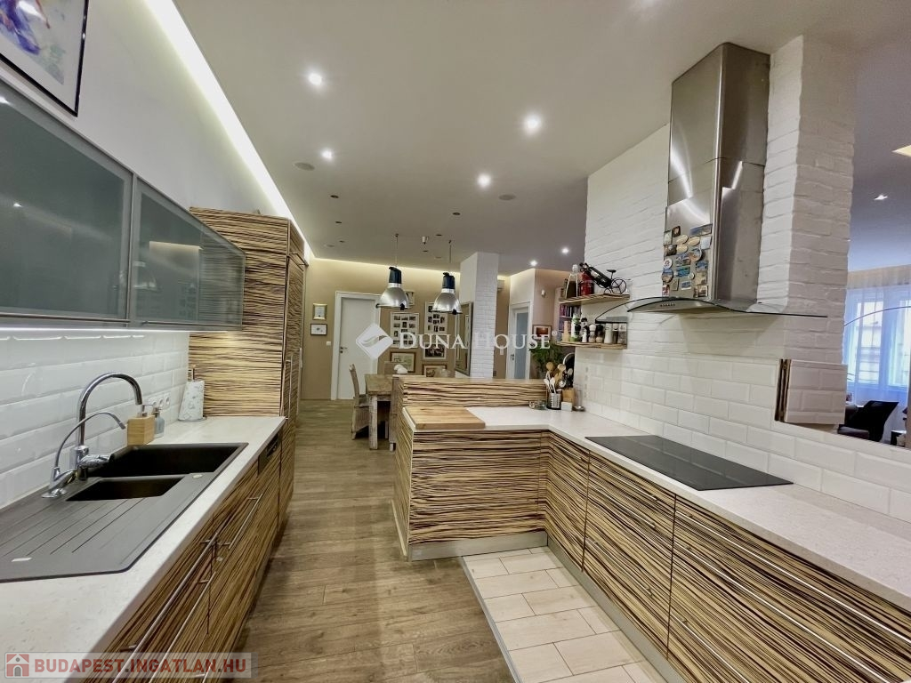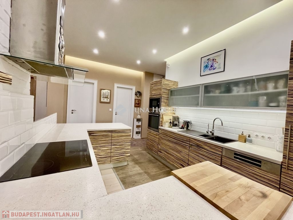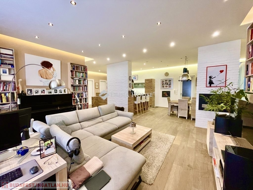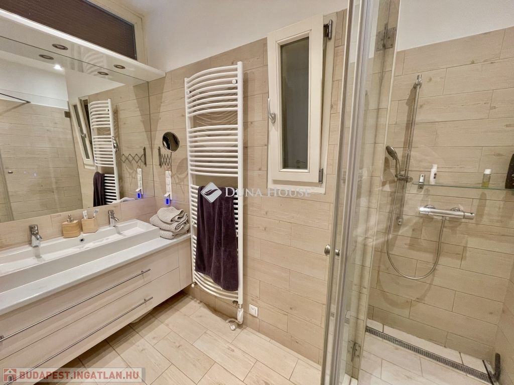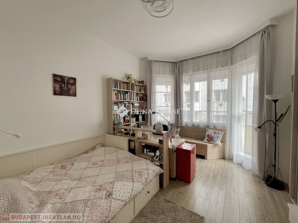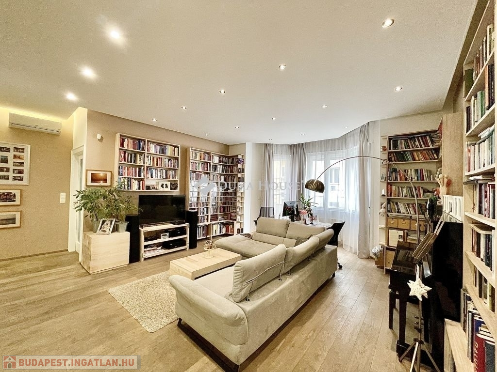 10 éve teljeskörű felújításon esett át, modernizálták a nyilászárókat, minden szobát klimatizáltak és távfelügyeleti riasztóval láttak el. Az újragondolt alaprajzon összesen 5db beépített szerkrényekkel is felszerelt hálószobával, 2 fürdőszobával, vendég wc-vel, valamint egy hatalmas amerikai konyhás nappali, étkező került kialakításra. A tájolásnak köszönhetően egész nap világos. Két hálószoba a csendes, a parkosított belső udvarra néz, míg a többi szoba utcai kilátást biztosít. 2db gardrób 1db kamra helyiség került még kialakításra, a három erkély összesen 12 négyzetméter, valamint hozzátartozik 4 m2-es alagsori, zárható tároló is.