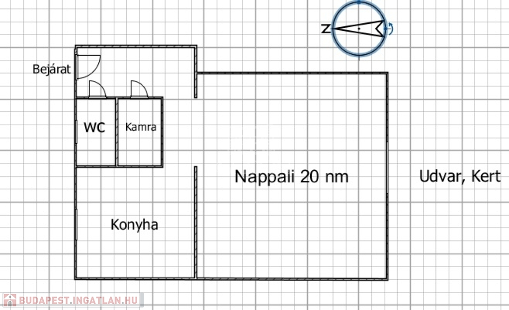 Az ingatlan 20 nm-es szobával rendelkezik, amely kertre néz.