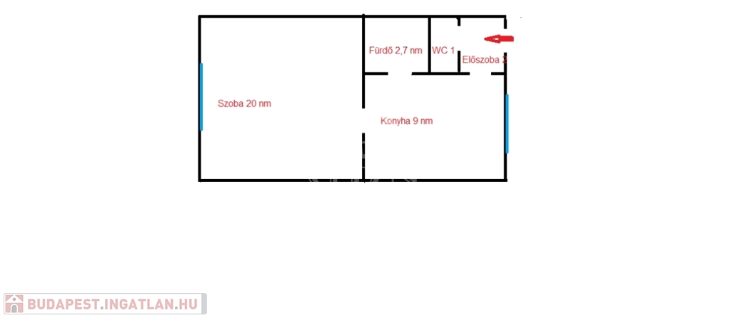 Belépve egy kisebb 2 nm-es előszobába érkezünk, az előszoba ajtóval szemben találjuk az 1 nm-es külön nyíló WC-t.