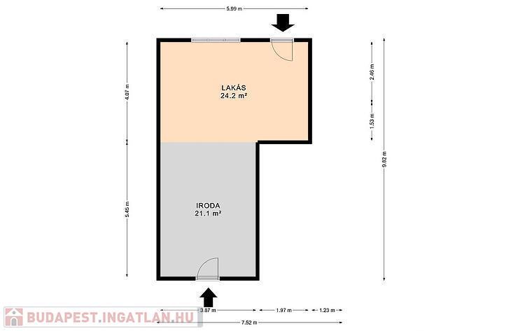 Eladó Tátra utcában egy összességében 45 nm-es ingatlan, amely két helyrajzi számmal rendelkezik: egy utcáról nyíló üzlethelyiségből és egy külön kis lakásból áll, így többféle hasznosítási lehetőséget kínál. Az utcai bejáratú üzlethelyiség 21 nm-es, keleti tájolású, közvetlenül alatta egy 38 nm-es pince található, amely kiválóan alkalmas tárolásra vagy akár egyéb funkciók kialakítására. Az üzlethez tartozik egy belső udvarról megközelíthető toalett és egy kisebb tároló is. A lakás 24 nm-es, nyugati fekvésű, csendes belső udvarra néz, így nyugodt lakókörnyezetet biztosít. Az ingatlanok állapota közepes, igény szerint felújíthatók, saját elképzelésre alakíthatók. A fűtést gázkonvektor biztosítja. Az ingatlan kizárólag egyben eladó, ideális lehet vállalkozás és lakhatás kombinációjára vagy befektetési célra is. Elhelyezkedés szempontjából néhány perc sétára található a Westend és a Szent István körút. A közelben elérhető az M3-as metró, valamint a 4-6 villamos és számos buszjárat. Kérdés vagy megtekintési szándék esetén keressen bizalommal. Ügyfeleink részére díjmentes bankfüggetlen hitelügyintézést tudunk kínálni.