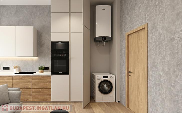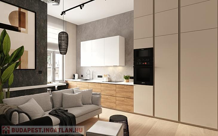 Eladó Budapest XIII. kerületében, a Radnóti Miklós utcában egy rendezett, liftes, akadálymentesített, belsőkertes társasház 3. emeletén található, teljes körűen felújított lakás. A korszerűsítés során megtörtént a teljes vezetékcsere, új nyílászárók kerültek beépítésre, modern fűtésrendszer készült, valamint gépesített konyhabútor is beépítésre került. Az amerikai konyhás nappali és a külön nyíló hálószoba praktikus, kényelmes elrendezést biztosít. Magas emeleti elhelyezkedése miatt a lakás világos, napos. A munkálatok várható befejezése: március 30. A képek látványtervek, a kivitelezés azok alapján készül. A beépített bútorok és a műszaki tartalom a vételár részét képezik. Az ingatlan ügyvédi megosztással jött létre (egy nagyobb lakás kettéosztásával), külön bejárattal és külön mérőórákkal rendelkezik. Per- és tehermentes. A környék rendezett, a közlekedés kiváló, közelben a Westend, éttermek, M3-as metró, 4-6 villamos és számos buszjárat. Kérdés, illetve megtekintési szándék esetén hívjon minket bizalommal! OSP hitel ehhez az ingatlanhoz nem vehető igénybe!