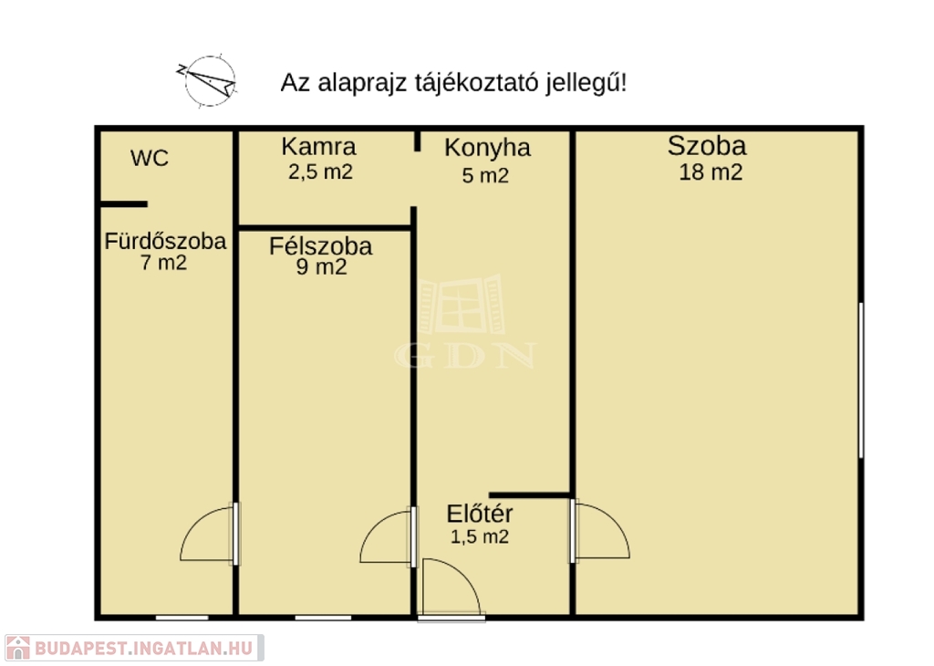 - Elosztás: 1+1 szoba