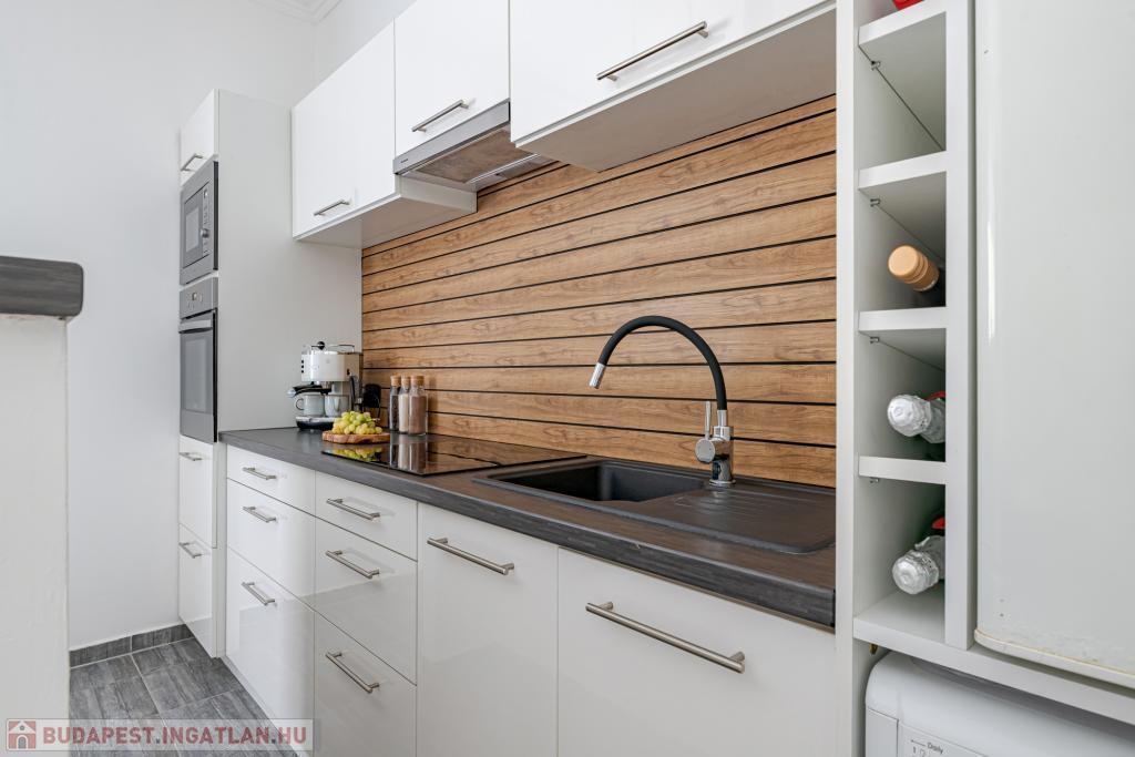 A lakás hét éve teljes körű felújításon esett át: megújult az elektromos és vízhálózat, redőnyös nyílászárók kerültek beépítésre, új burkolatokat, lámpatesteket kapott, modern, gépesített konyhát alakítottak ki (sütő, indukciós főzőlap, elszívó, mosógép, hűtő, vadonatúj beépített mikró), ezek a vételár részét képezik.