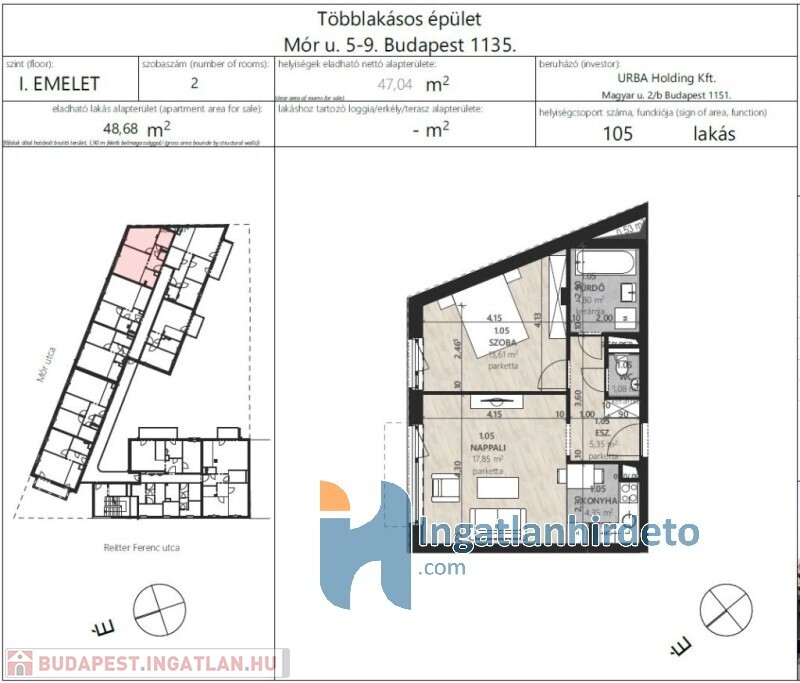 (a másik lakás 47 m2-es, erkély nélküli, I. emeleti és 70,5 M Ft-ba kerül)