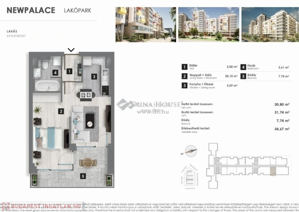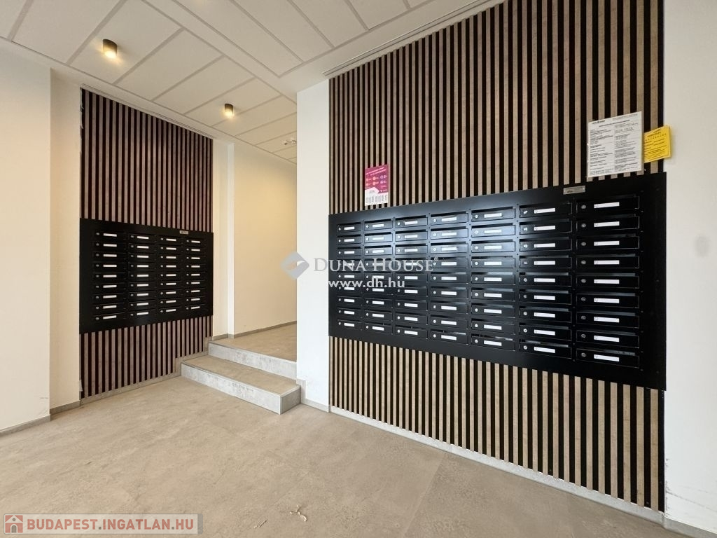 Angyalföldön!Ritka lehetőségként kínálunk eladásra A főváros egyik legnépszerűbb, gyorsan fejlődő, csendes részén, a Xlll. kerületi, közkedvelt New Palace lakóparkban, egy, újépítésű, 35 nm alapterületű, rendkívül átgondolt, jó elrendezésű, világos, terasszal rendelkező, 6. emeleti, nappali + 1 szobás, gyönyörű studio lakást.A lakás 2025 szeptemberére lesz beköltözhető. Teljeskörűen, a tervek szerint, magas minőségben megvalósítva. Az előszobából egy rövid közlekedőn érhető el az a kicsi de élhető méretű, északi irányba néző, hatalmas teraszajtónak köszönhetően, a nap legnagyobb részében szép, világos nappali, ahol helyet kapott egy kompakt konyha is. Innen nyílik a szintén északi fekvésű hálószoba is csendet és intimitást biztosítva az alváshoz. Szintén az előszobából megközelíthető egy minden komfortot kielégítő fürdőszoba is, ami Wc-vel és egy épített zuhannyal került kialakításra. A federt terasz, ami a nappaliból és a hálószobából is megközelíthető, alkalmas, grillezésre, vendégfogadásra, északi tájolásnak köszönhetően, kellemes, árnyékos, így a nyári kánikulában is rendkívül élhető. Valamennyi burkolat, prémium kategóriás. Az épületben biztonsági kamerarendszer működik. A lakás pedig távfelügyeletre alkalmas riasztórendszerrel felszerelt. A nappali és a szoba is, külön szabályozható klímarendszerrel rendelkezik. Belmagasság: 2,7 m.Az ingatlan rendkívül alacsony fenntartási költségű. Egyedi mérőórás, házközponti gázkazán, mennyezeti hűtő—fűtő rendszer gondoskodik a fűtésről és a melegvízellátásról, melynek összege rendkívül alacsony havonta, A közös költség pedig magában foglalja az összes házzal kapcsolatos egyéb költséget. A társasház rendelkezik megtakarítással, illetve, biztosítással is, a közös képviselet gondosan kezeli a ház ügyeit.A Lakópark elhelyezkedése kiváló, autóval a Váci útnak köszönhetően, bárhová gyorsan el lehet jutni, de tömegközlekedéssel is jól megközelíthető, sétatávolságra 3-as Metro Gyöngyösi utcai megállója, buszmegállók, illetve az Újpest vasútállomás. Valamint, néhány perces sétatávolságra található Duna Plaza bevásárlóközpontnak, Aldinak, Sparnak, Lidl-nek, valamint a Népsziget és a gyöngyösi sétány és újpest központjának közelsége miatt biztosított számos bevásárlási, kikapcsolódási és sportolási lehetőség. A körzetes óvoda és általános iskola szintén 10 perces sétával elérhető.Az ingatlan, új építésű, állapotát tekintve, teljesen, kifogástalan állapotú, nyár végén költözhető. Kialakítása és a lakópark által biztosított csendes, kellemes környezete miatt kitűnő választás otthonnak de akár, értékálló befektetésnek is.Az utcában, ingyenes a parkolás. Illetve a lakáshoz opcionálisan vásárolható, teremgarázs beálló épületen belül a pinceszinten.